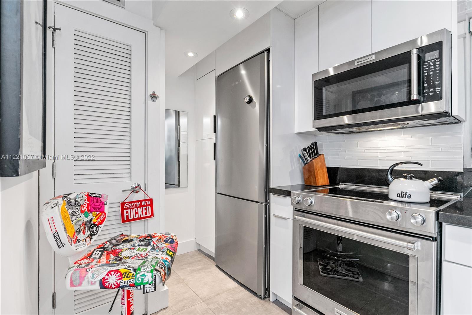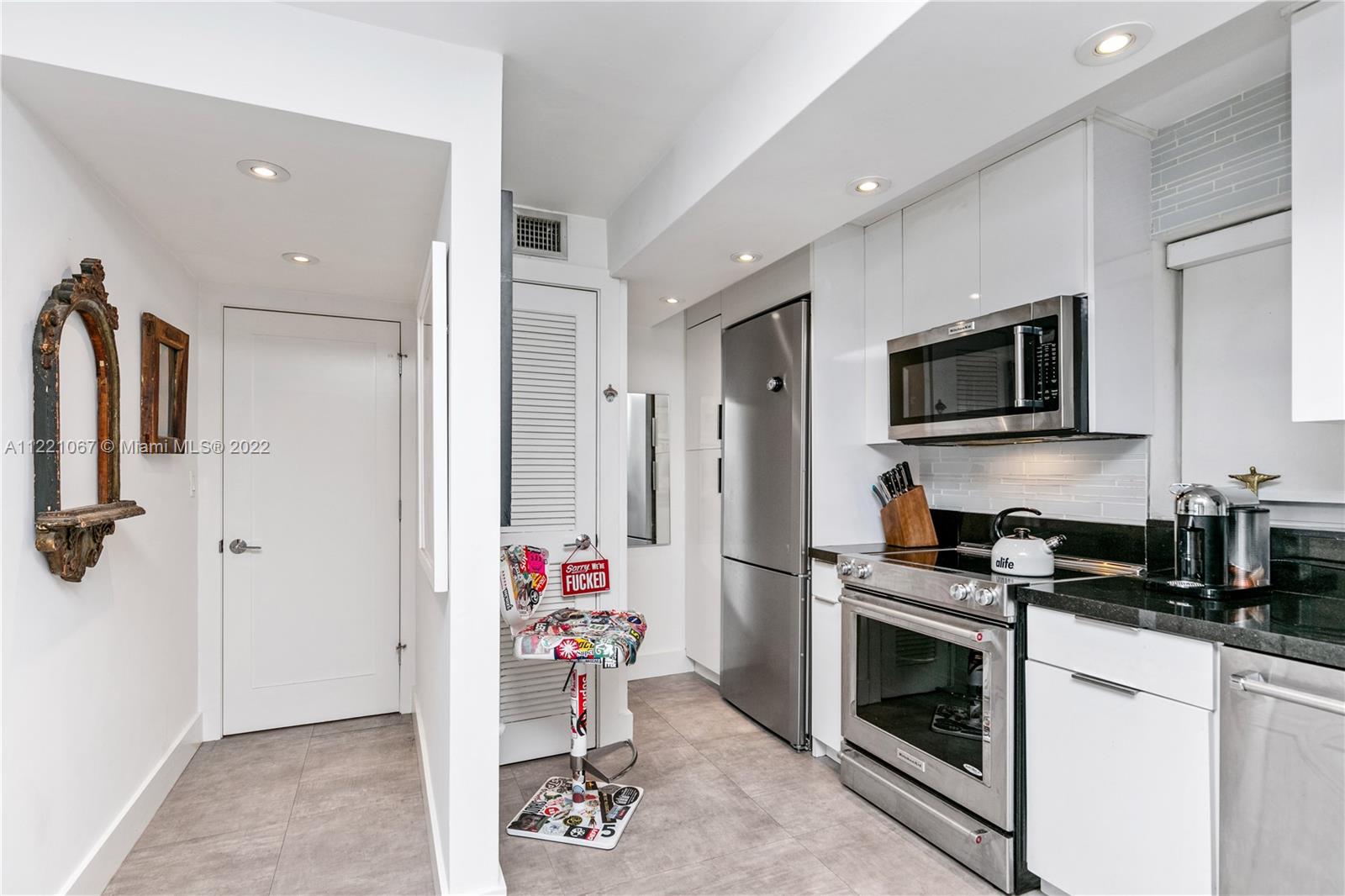 Your buyer’s search is over! completely remodeled large 1 bedroom unit with new kitchen, bathroom, modern tile floors, impact door and windows, assigned covered parking. Elevator building with pool located within walking distance to Trader Joe’s, Fresh Market, Publix, Whole Foods, variety of gyms, AMC movie theater and great restaurants and bars. Just a strole across the bridge for sunset drinks at The Standard. A small walking bridge right outside the building to sunset harbour . Biking along the Venetian Causeway is one of the most beautiful rides in miami . If you like quiet and peaceful this neighborhood is for you, even during the busiest holidays this neighborhood remains quiet. Enjoy some of the most incredible sunsets everyday. Laundry right outside the front door of the apartment.