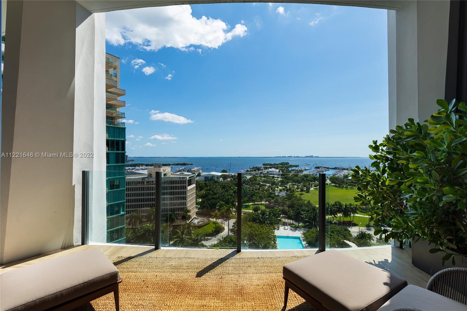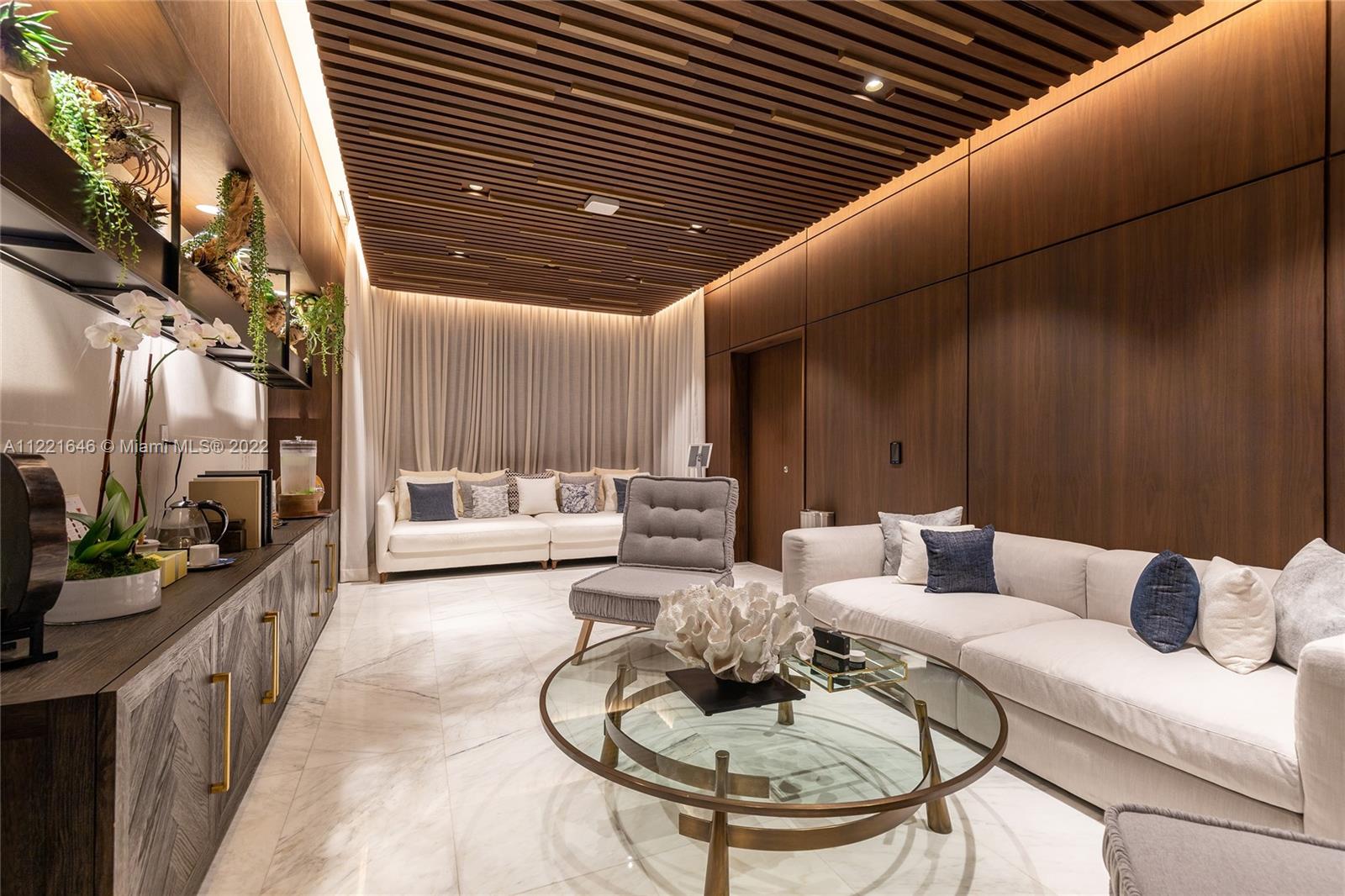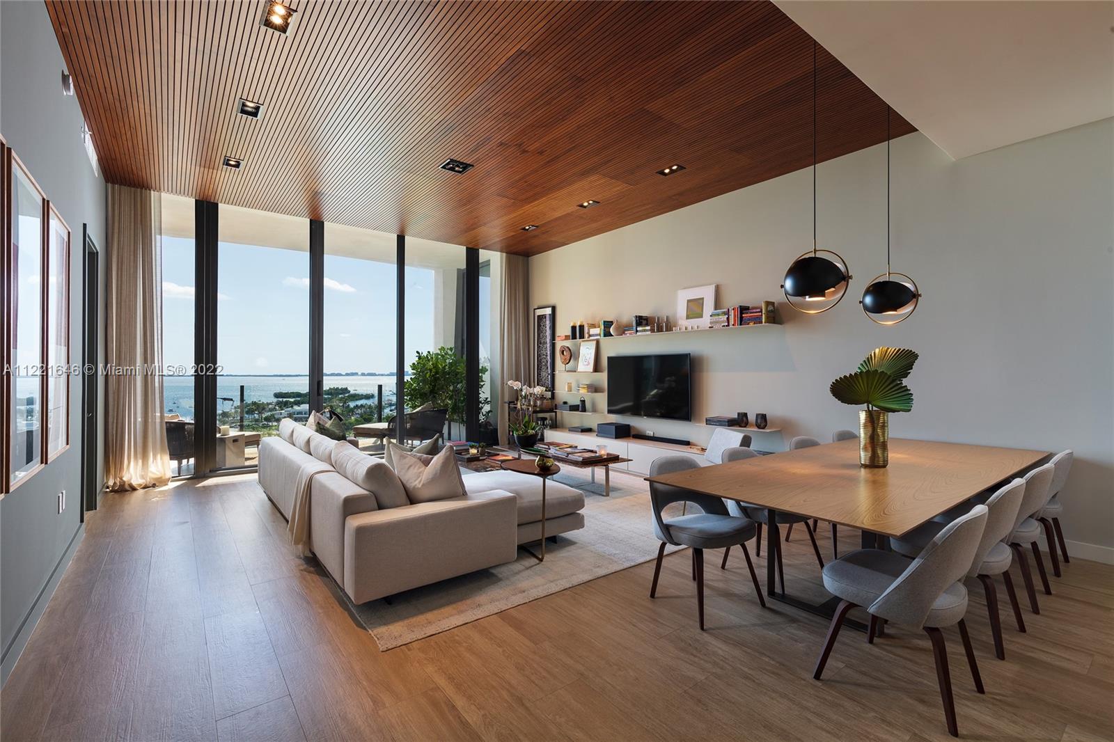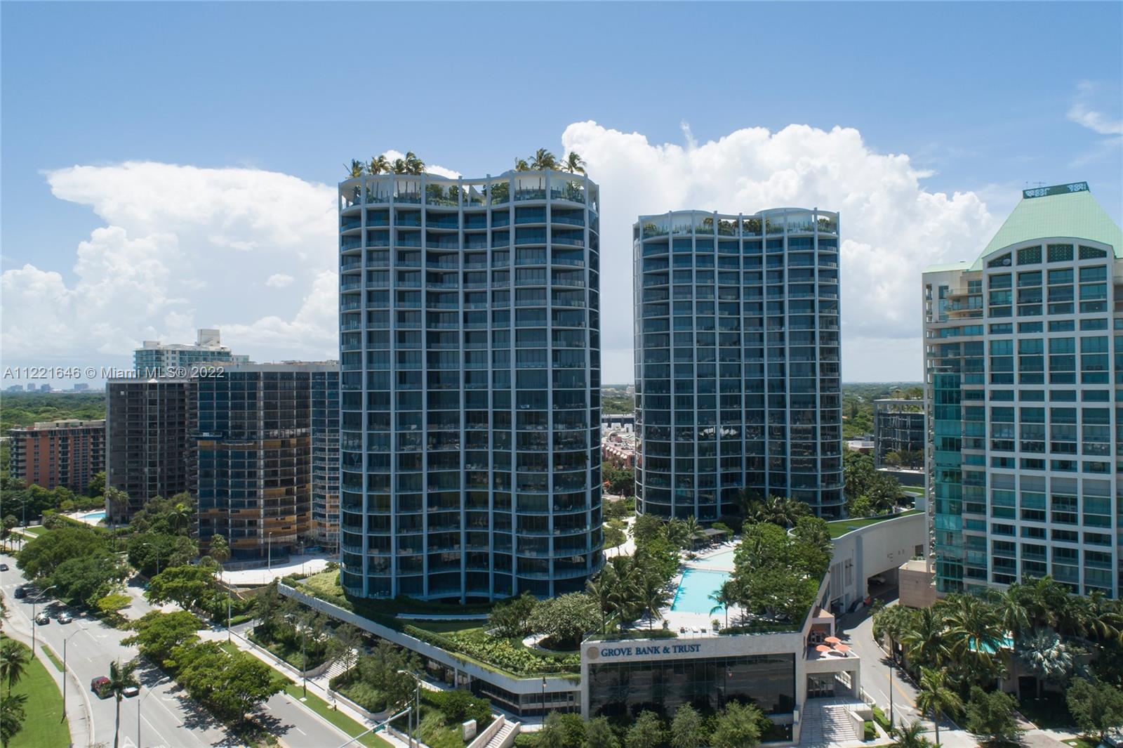 One of a kind floor plan with exquisite design features at Two Park Grove. Through your private foyer, be greeted by spectacular views of Biscayne Bay, 12’ floor-to-ceilings windows, and a private 314 sf terrace. Thoughtful upgrades and impeccable, custom wood accents throughout put this home in a class of its own. The kitchen features Italian cabinetry, marble countertops, high-end appliances, and improved storage. Primary bedroom with water views, two walk-in closets, and a luxurious marble and shell stone bathroom. Split floor plan with two additional bedrooms plus den/office. Unbeatable walkability and 5-star amenities including 24-hour concierge, restaurants, fitness center, spa, 4 pools with attendants and private cabanas, kids’ room, movie theater, and more. Two parking spaces.