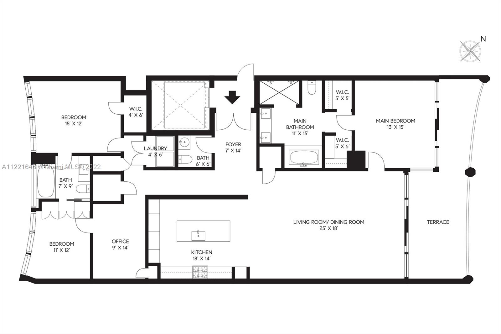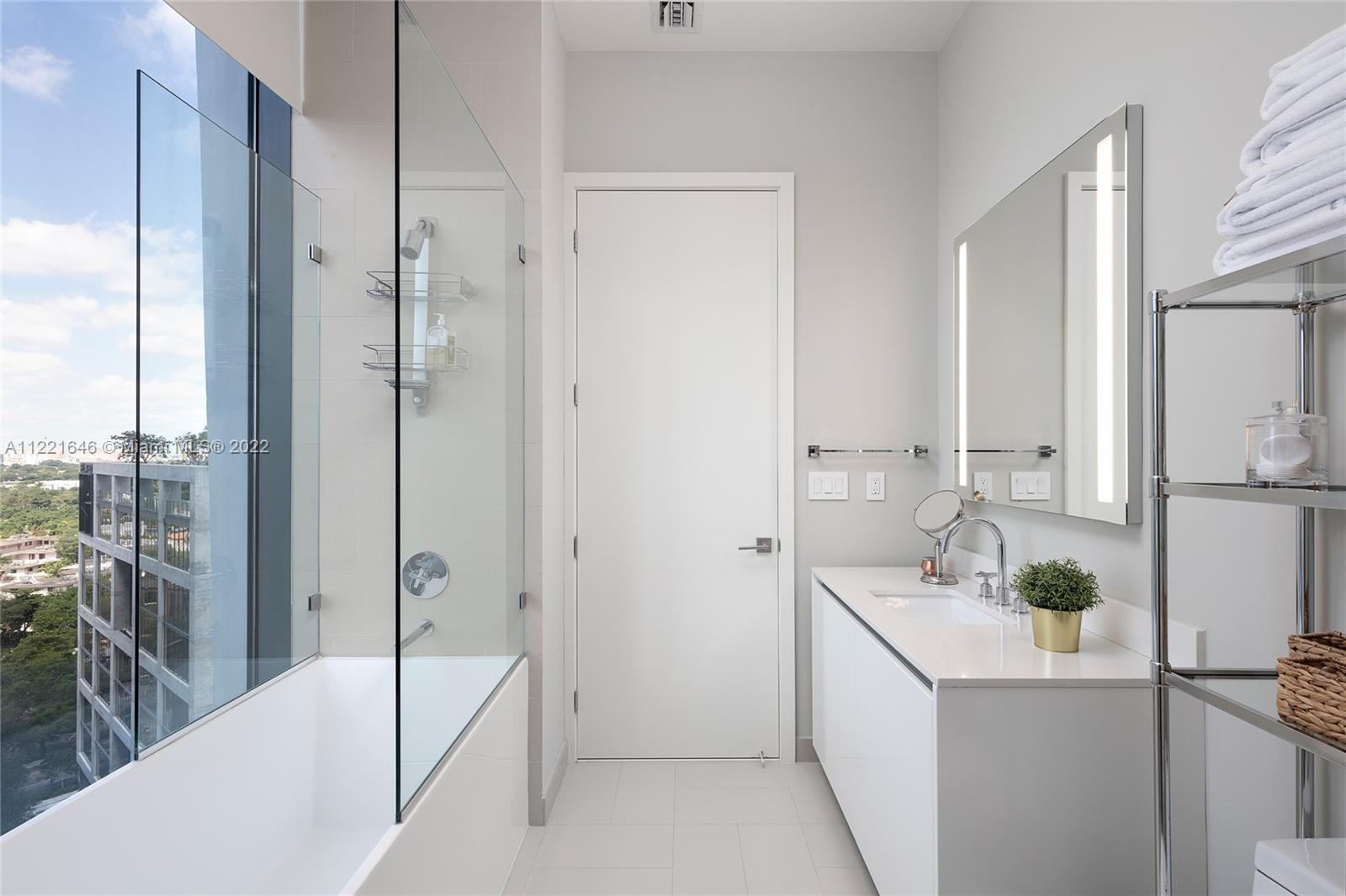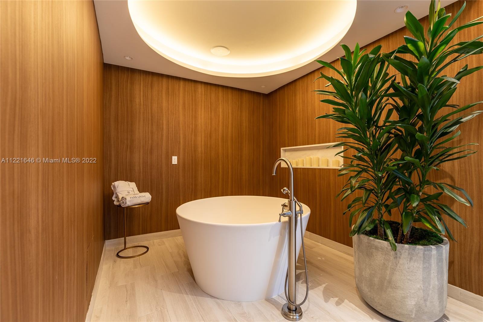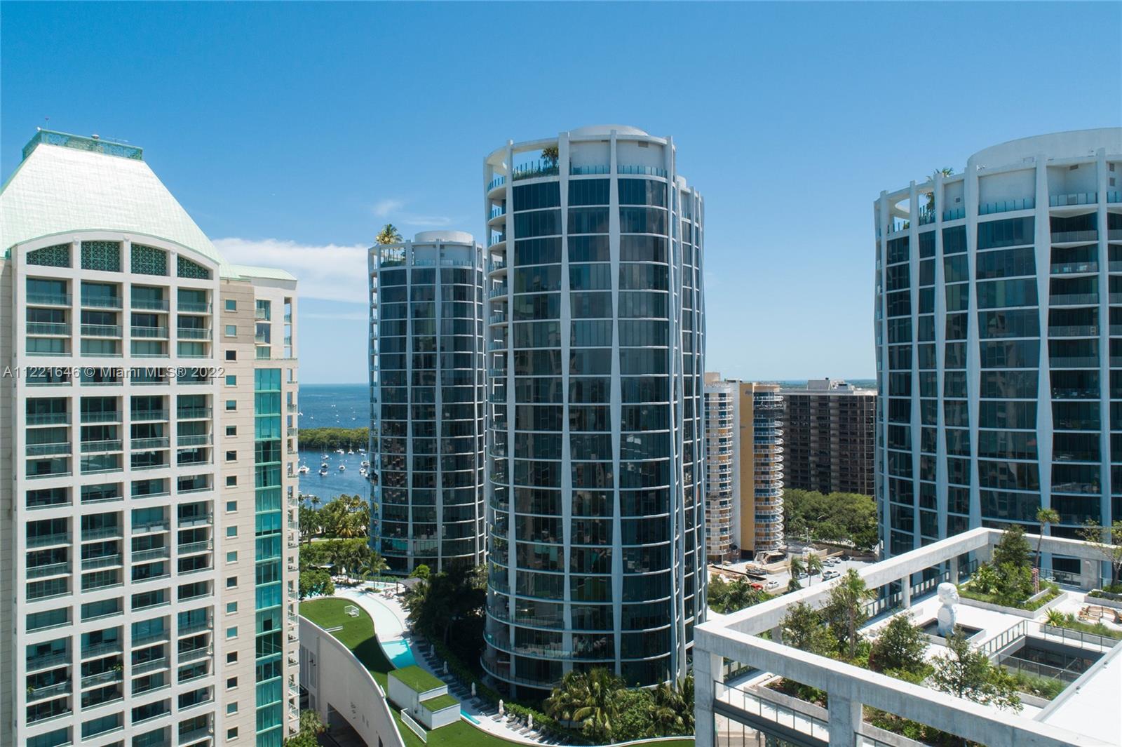 One of a kind floor plan with exquisite design features at Two Park Grove. Through your private foyer, be greeted by spectacular views of Biscayne Bay, 12’ floor-to-ceilings windows, and a private 314 sf terrace. Thoughtful upgrades and impeccable, custom wood accents throughout put this home in a class of its own. The kitchen features Italian cabinetry, marble countertops, high-end appliances, and improved storage. Primary bedroom with water views, two walk-in closets, and a luxurious marble and shell stone bathroom. Split floor plan with two additional bedrooms plus den/office. Unbeatable walkability and 5-star amenities including 24-hour concierge, restaurants, fitness center, spa, 4 pools with attendants and private cabanas, kids’ room, movie theater, and more. Two parking spaces.