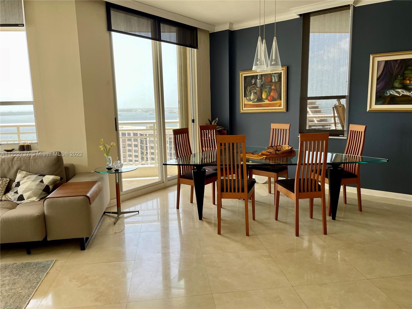 Unique corner unit facing SE with incredible ocean and skyline views. Great split plan lay-out with 2 on-suite bedrooms and 1 additional powder room / half-bath. Marble floors and recently updated stainless-steel appliances. One Tequesta is a fully serviced building including 24-hr concierge, valet parking for guests and high-end amenities. New lobby currently under construction. Enjoy the privacy of Brickell Key, surrounded by water, with plenty of green areas, a 1-mile jogging path, shops and restaurants. Just minutes away from Brickell City Center and Mary Brickell Village. Designer furniture in the unit could be included in the sale.