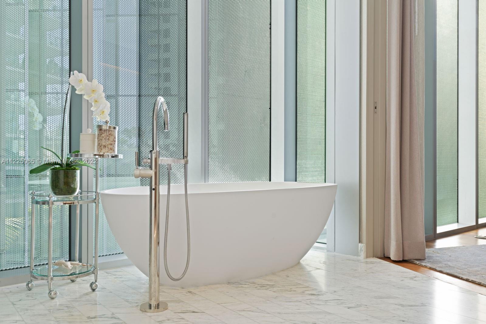 Incredible turn-key furnished opportunity at Miami Beach’s Monad Terrace. Designed by Pritzker Prize Winning Architect, Jean Nouvel.This 4 bedroom, 4.5 bath residence in the premier A-Tier features breathtaking bay and city views, expansive terrace with wrap around balcony and impressive upgrades at every turn. Enjoy luxurious teak and marble flooring, kitchen designed with Gagenau appliances and Calcatta counters in the primary living and entertainment area.Primary bedroom with drop-down video screen and spa-quality en-suite bathroom with steam shower and separate soaking tub. Thoughtful upgrades include custom built wet bar with wine fridge and beverage station, upgraded lighting, built-in speakers, automated window treatments, Olivieri custom closets and primary bathroom steam shower.