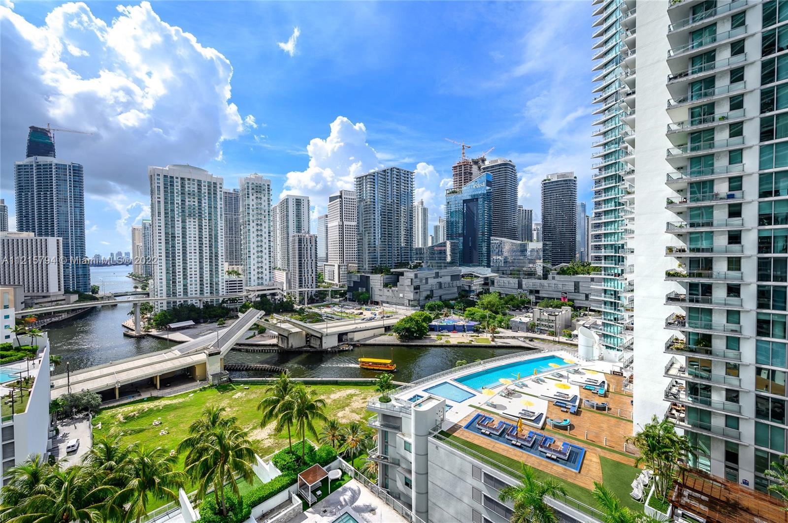 *Unobstructed water & skyline views from this spectacular split floor plan 2 bedrooms 2 bathrooms condo w/den *, 1 garage parking, expansive terrace spanning the length of unit. The best line in building w/wide open views overlooking Miami River & Biscayne Bay, modern and open style, stainless steel appliances, cooking island, impressive master bath, floor to ceiling impact glass throughout. New water heater. Low fees include cable, internet, 24 hr security & valet. The Ivy has walking distance to Brickell City Center, Marry Brickell Village, Metro mover and easy access to I-95. The building has 2 pools, media/event , children's play area, game room, full gym, BBQ area, spa. This community has beautiful walking and biking trails with great views of the Miami River.