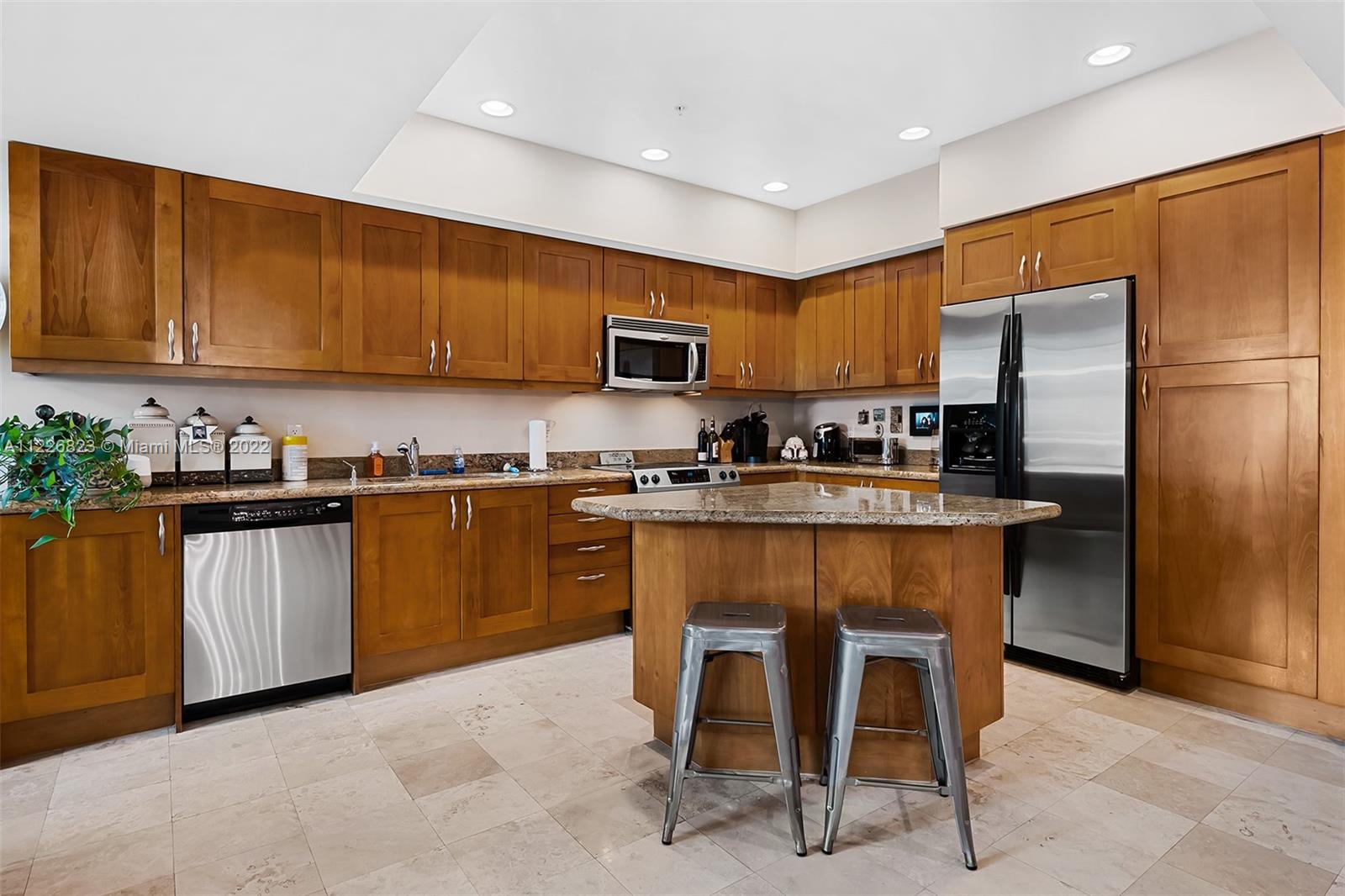 Rare opportunity! Incredible 2-story TOWNHOUSE/condo with large gated patio by the pool. Spacious 2/2.5 w/ 1 bedroom on ground floor and master bedroom upstairs with open balcony overlooking pool area. Dramatic 20 ft. vaulted ceilings throughout open living area. Incredible natural light from floor to ceiling impact windows. Open kitchen with granite countertops, SS appliances and wood cabinetry. Washer/Dryer inside. Amenities include 24 hr. security, tennis, spa, fitness center, jogging path, heated pool, billiard room . Convenient location walking distance to Starbucks, Supermarkets & Restaurants. Assoc fee includes cable/internet. Investors can rent right away. TENANT OCCUPIED UNTIL JANUARY 21, 2023 PAYING $2,775. Lease must be assumed.