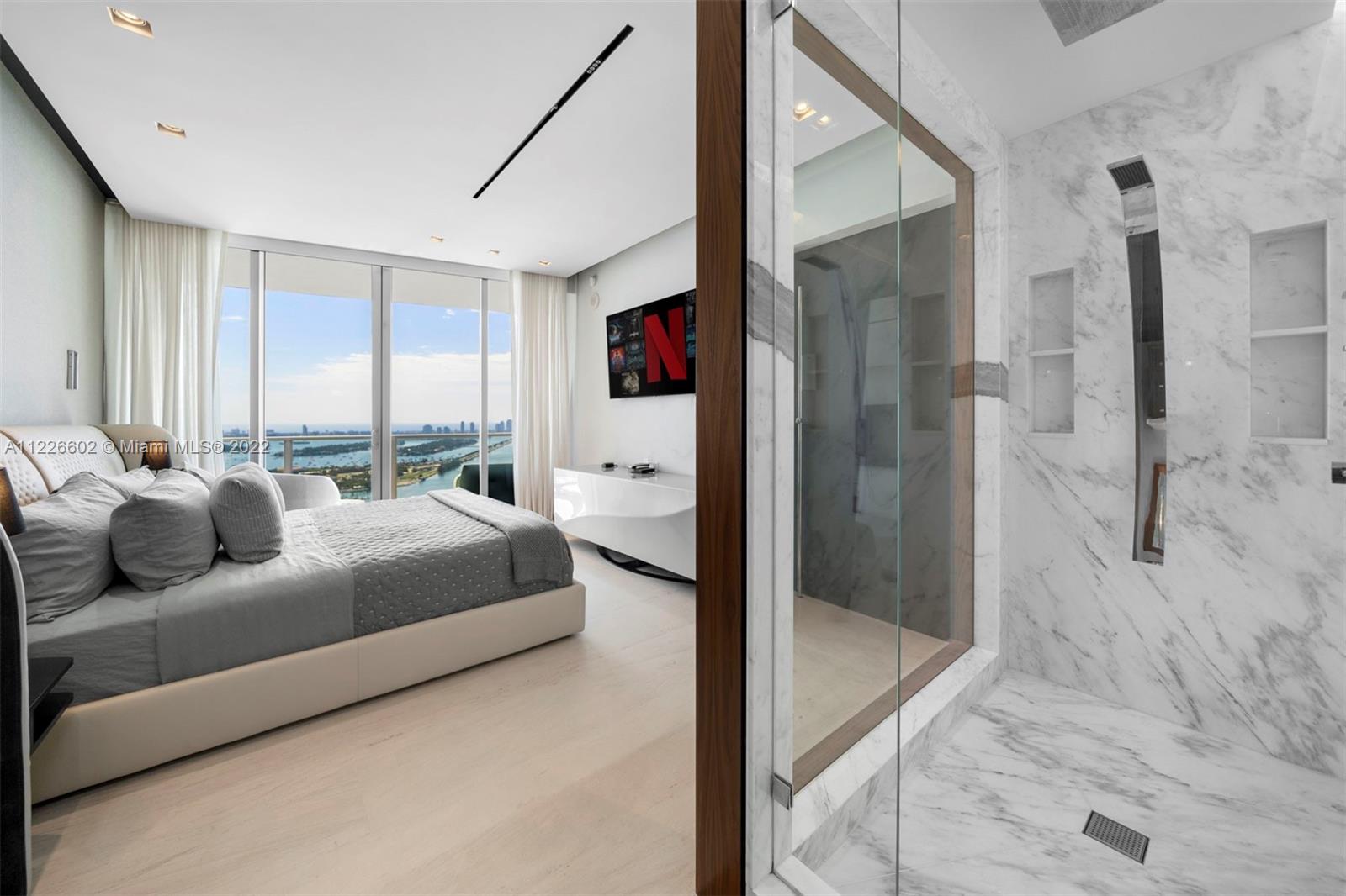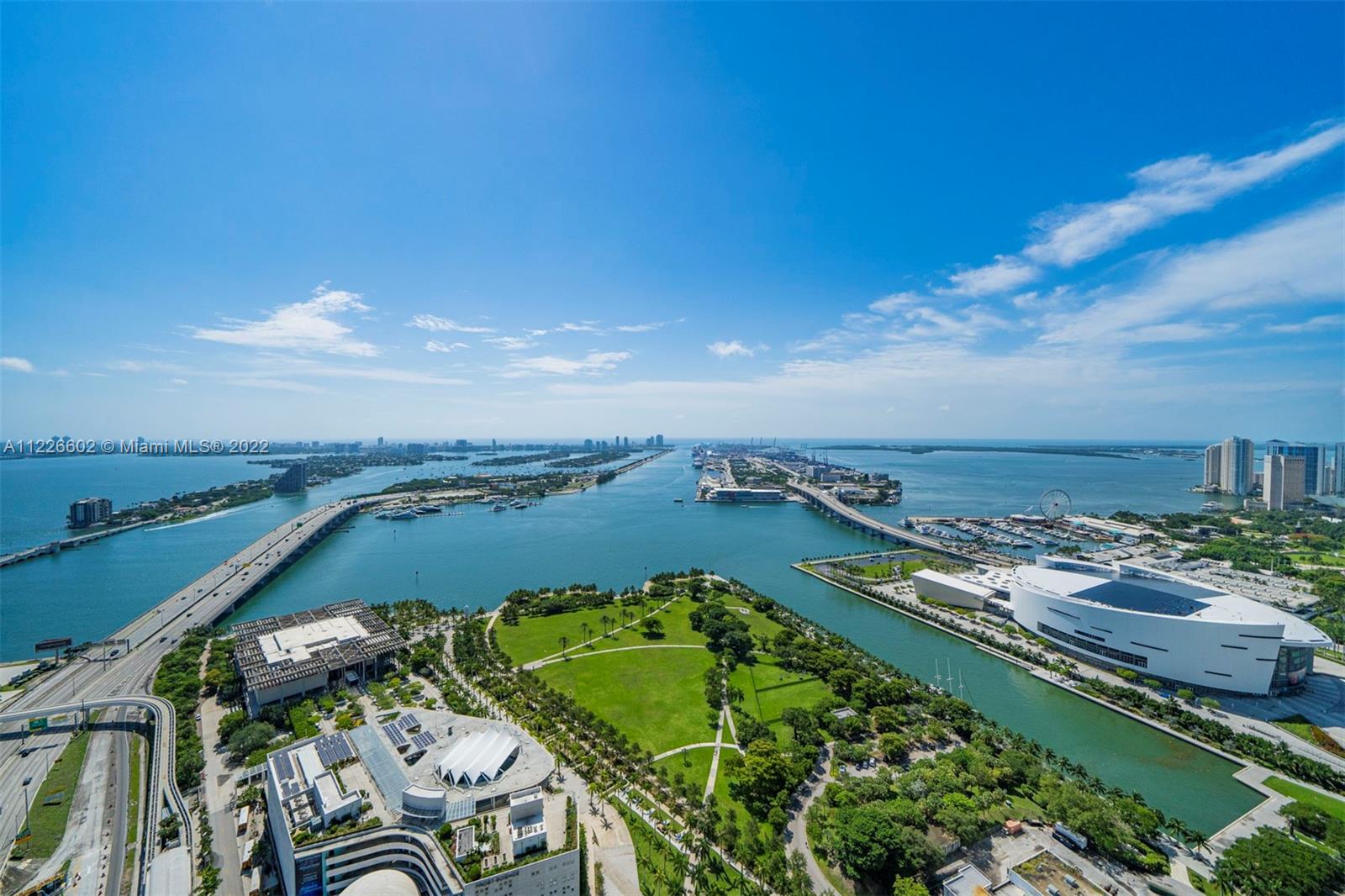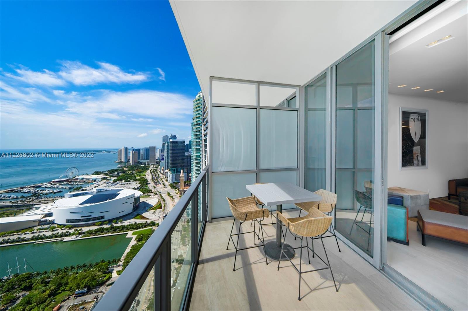 Recently remodeled 2 Bedroom, 2 Bathroom + powder room at the Marquis Miami Downtown with incredible views of Biscayne Bay and the Miami Beach Skyline. This condo has just been completely renovated with top of the line finishes and quality craftsmanship including natural stone flooring throughout, custom millwork, new lighting, linear air diffusers, new bathrooms and kitchen and spacious closets. Marquis Miami has a full suite of services and amenities and is located across from Maurice A. Ferré Park in downtown Miami, home to the Perez Art Museum & Patricia and Phillip Frost Museum of Science and minutes to FTX Arena as well as the Arts & Entertainment District.