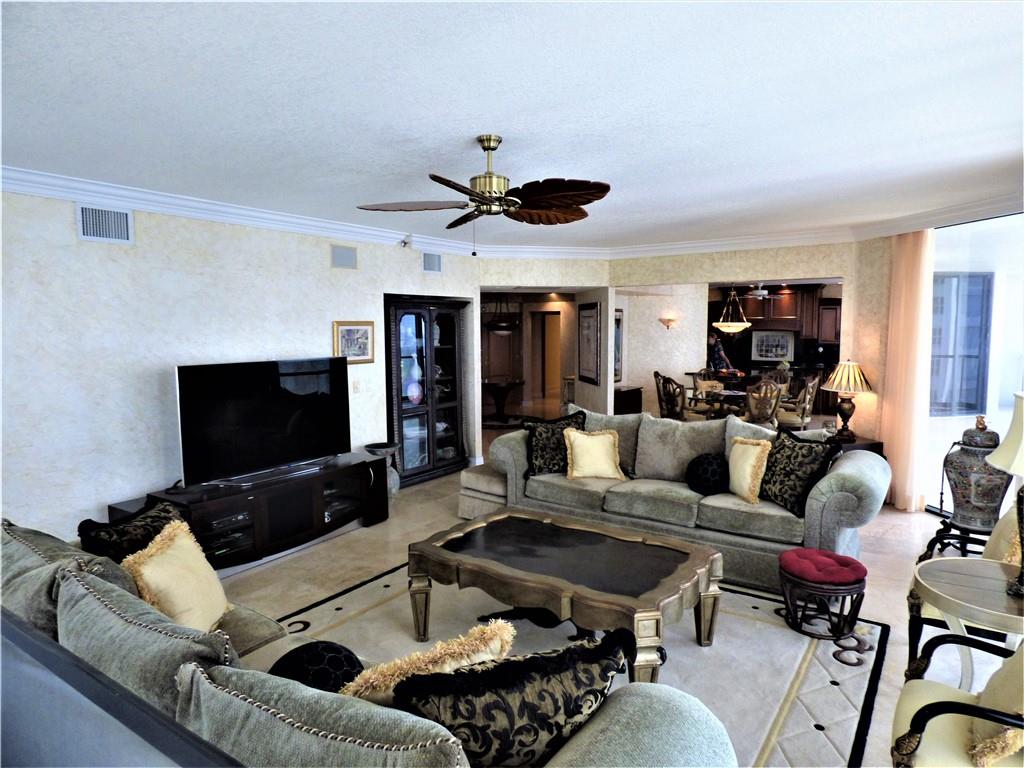 Magnificent 3BR/3B fully-furnished apt. with ocean, city & ICW views. Approx. 3200 sf includes a wraparound balcony with 2 patios for relaxing or entertaining. Also included is a unique poolside cabana w/ kitchen and half bath. Apt. has impact windows, 9-ft. ceilings, crown moldings, custom cabinetry in kitchen and baths, marble floors thru-out, gorgeous custom wood doors, full laundry room with deep sink. Only 46 units with many building amenities and nice wide beach. Convenient to many shopping venues, fine dining, golf, airport and more. The Criterion's construction project will be completed this year. In addition to concrete restoration it includes glass balcony railings, bldg. painting, pool renovation, new pool/driveway pavers, beach area patios and tropical landscaping.