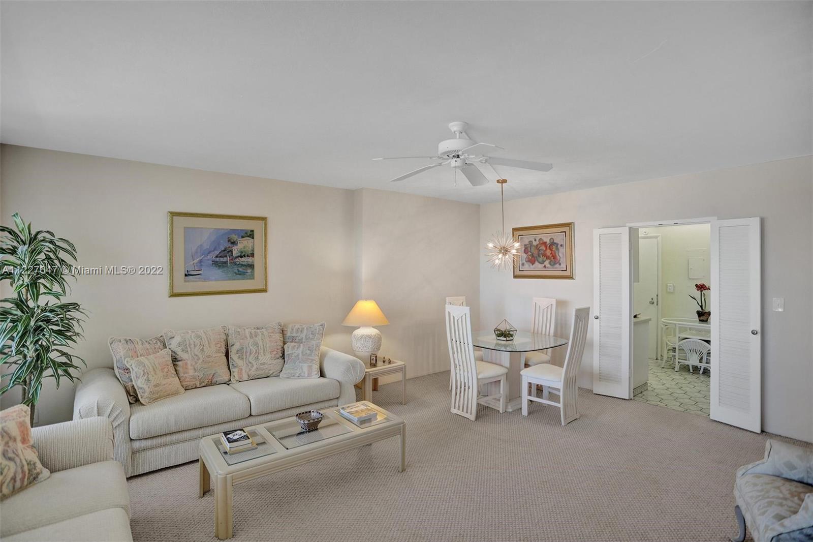 Stunning views of the Ocean, Intracoastal, City and Community Pool from your balcony! One of the most sought after buildings at Coral Ridge Towers, just steps from the beach! Spacious living area with Livingroom/Dining room combination, Eat-in Kitchen, Bedroom with 2 closets, plenty of storage with additional spacious hall closet and linen closet, marble in bathroom. Impact windows and balcony door. Separate Storage area for residents, and laundry is just a few steps down the hall. Beautiful waterfalls in the lobby, ammentities include hobby/recreation room, library, gym, community pool, and loads of activities and holiday parties for socializing! This community states HOPA 55+