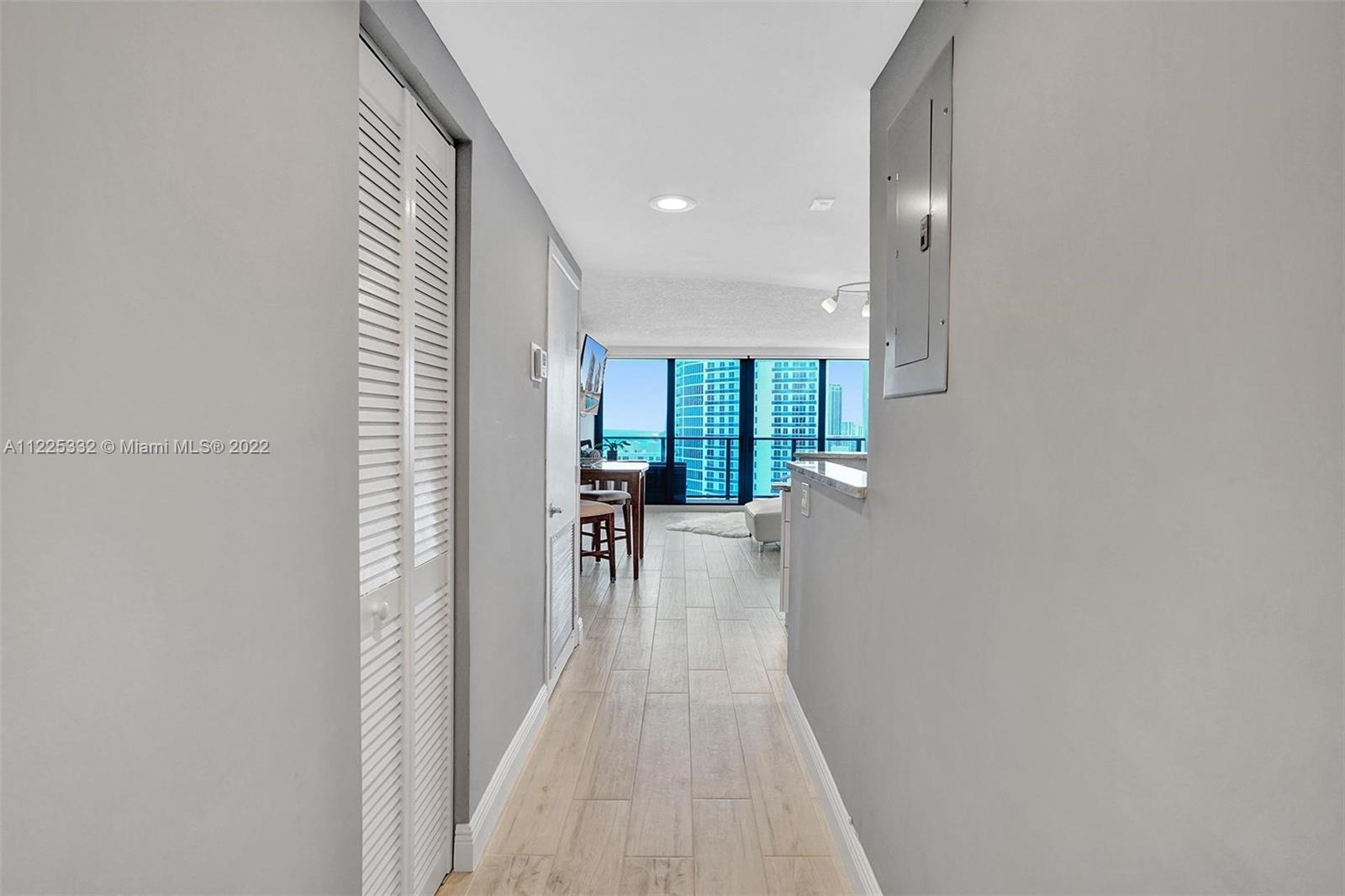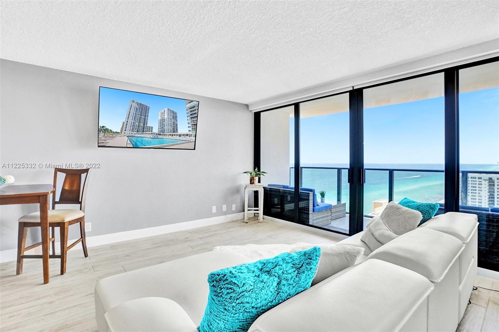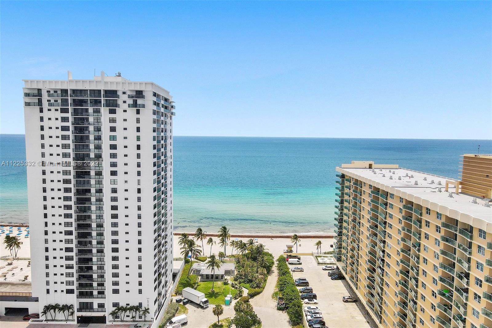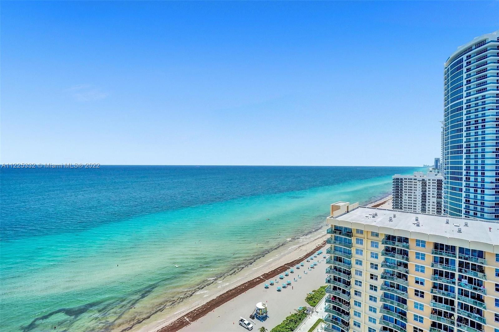 The views from the 24th floor from 1,260 SqFt condo will take your breath away! From turquoise colors of the ocean to an incredible intracoastal & city skyline views. Rarely available & completely remodeled residence with a cozy balcony-terrace will be your one-of-a-kind Oasis on the Beach! Open extended modern kitchen with a granite countertops, tile floors throughout. Brand new hurricane proof windows and glass balcony. Building was recently redone with new hallways & lobby decorated by Steven G Design. Amenities: includes 2 infinity pools, beach services, GYM. Restaurant on site. Perfectly located walking distance to Hollywood Boardwalk, near restaurants and shops, few minutes drive to FLL.