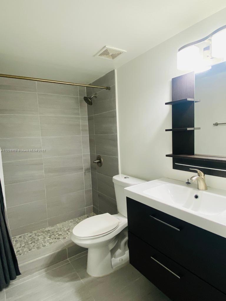 Great 2 bedroom 2 bath first floor large and bright corner unit with views of the pool and tennis courts. This condo has 2 oversized bedrooms with walk-in closets, ceiling fans, tiled floors all throughout, UPDATED Kitchen and Bathrooms, new A/C, washer and dryer inside the unit, and a screened patio with storage room. Las Vistas is a very desirable 24 secured gated community with tennis courts, pools, racquetball court and a 2 story fitness center, and you get 2 parking spaces + guest parking. Great central location walking distance to the new Downtown Doral shops, restaurants, parks and A+Doral schools. Minutes to the airport and expressways, Free trolley service for residents SEE MLS ATTACHMENTS, financed offers MUST be accompanied by DU Loan Approval. See Broker remarks for showings