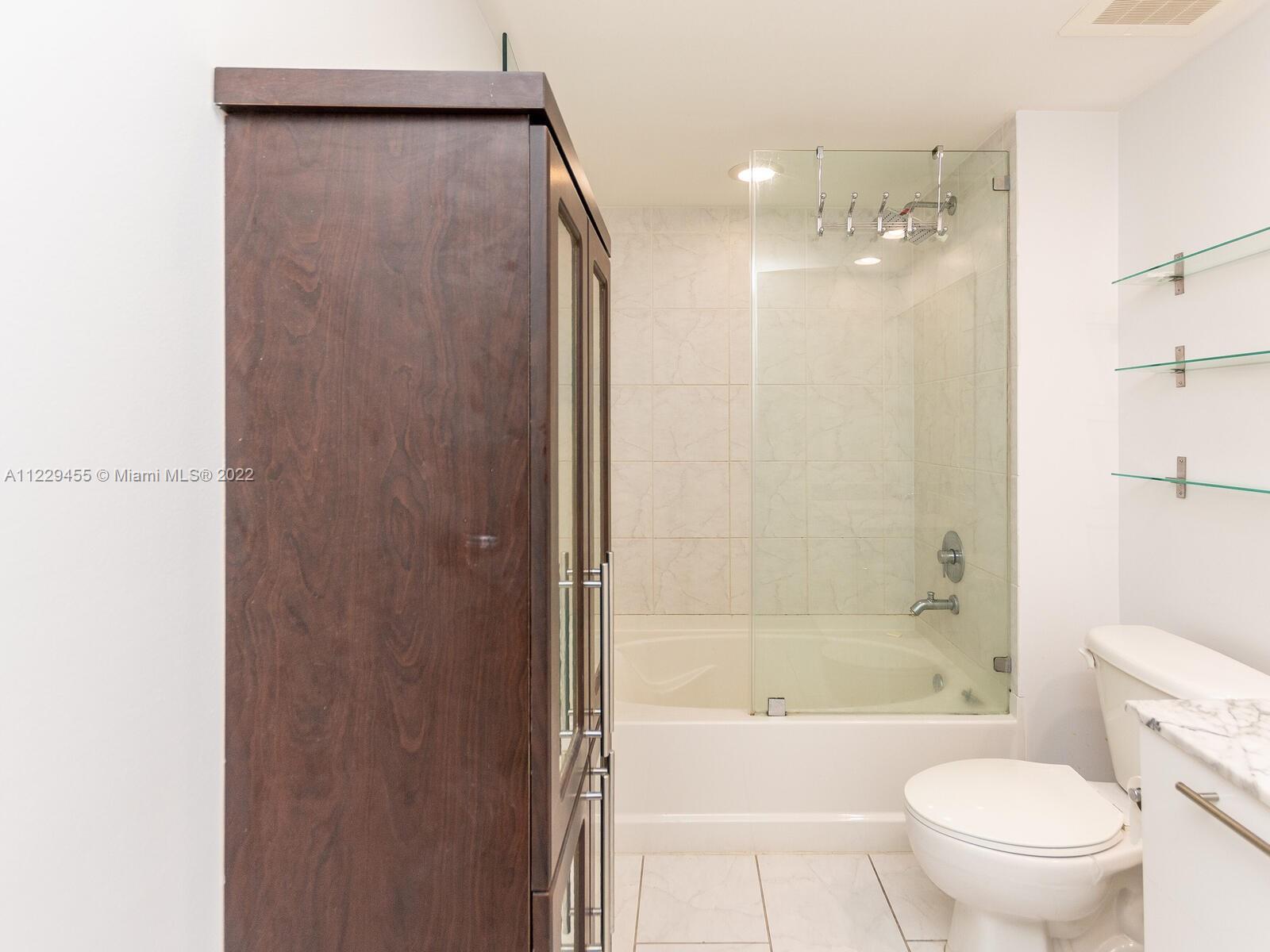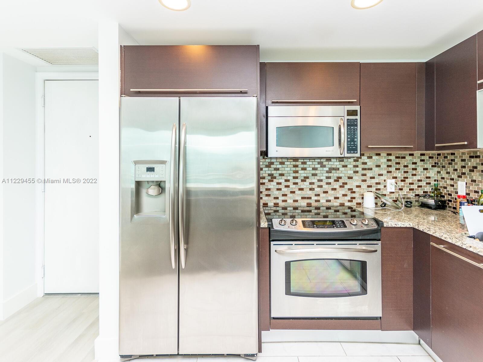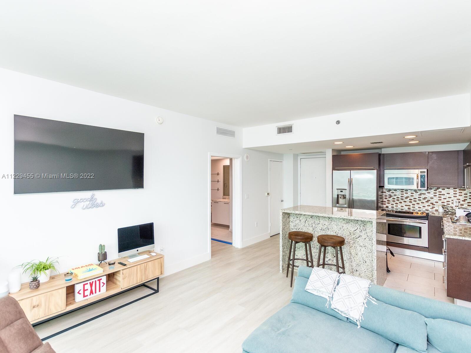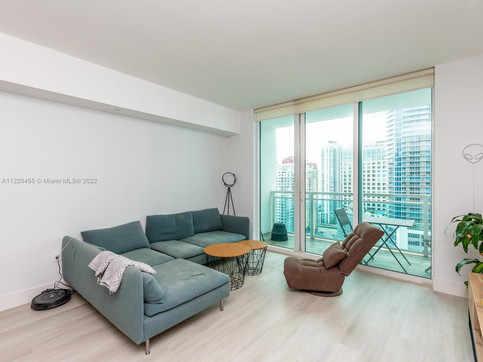 Beautiful 1/1 in sought after The Plaza, in the heart of Brickell. This bright unit has an open kitchen with SS appliances, granite counters, adjacent to living area with sliding glass door to balcony, overlooking skyline and Bay. New laminate wood like flooring just installed, built in furniture in bedroom. Inside washer and dryer. Amenities include gym, business room, top of the line pool. Unit is rented until end of September, buyer must assume lease. Please use showassist and allow 24 hrs notice for showings.