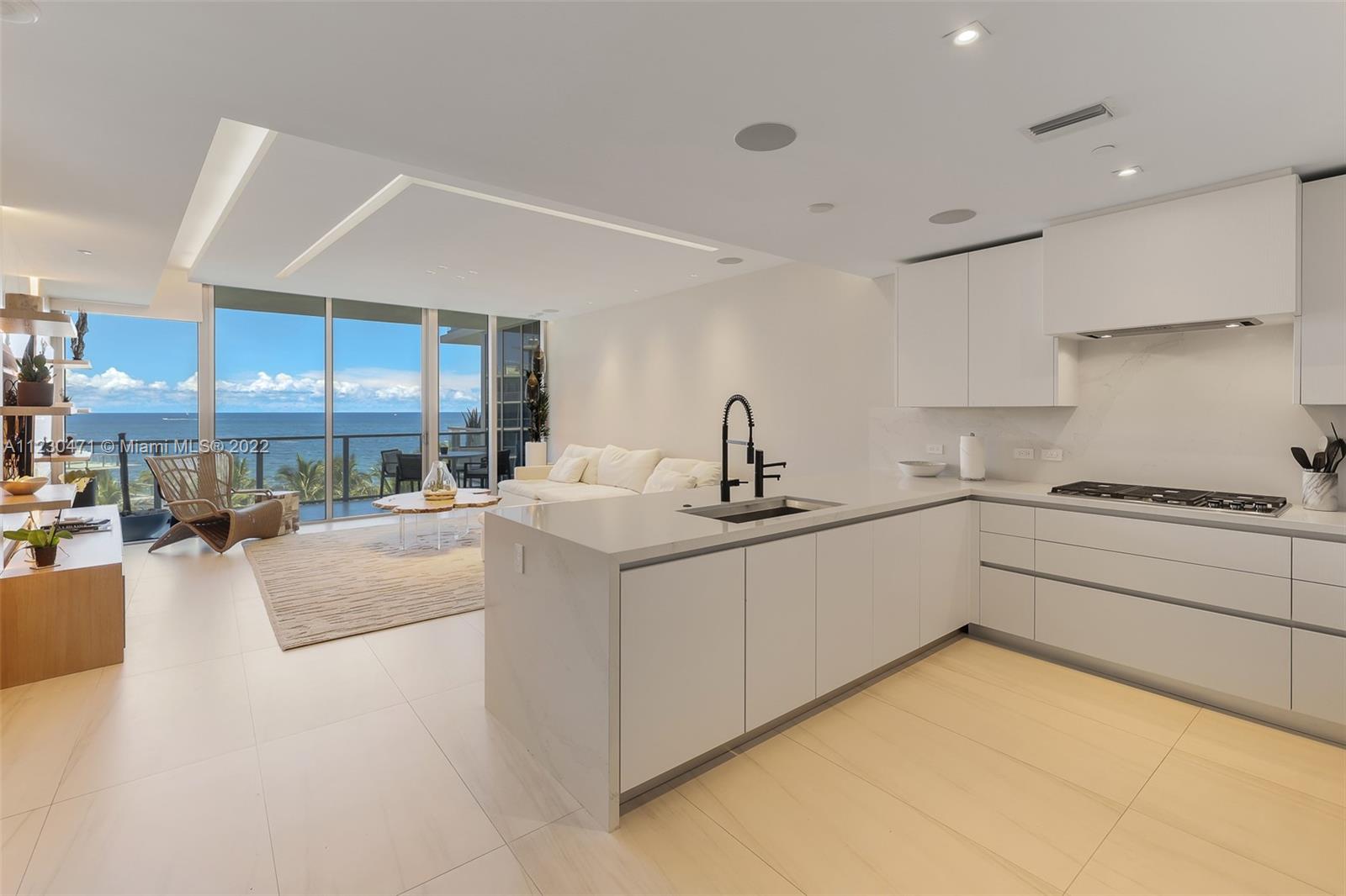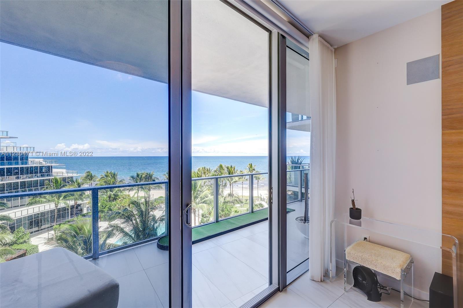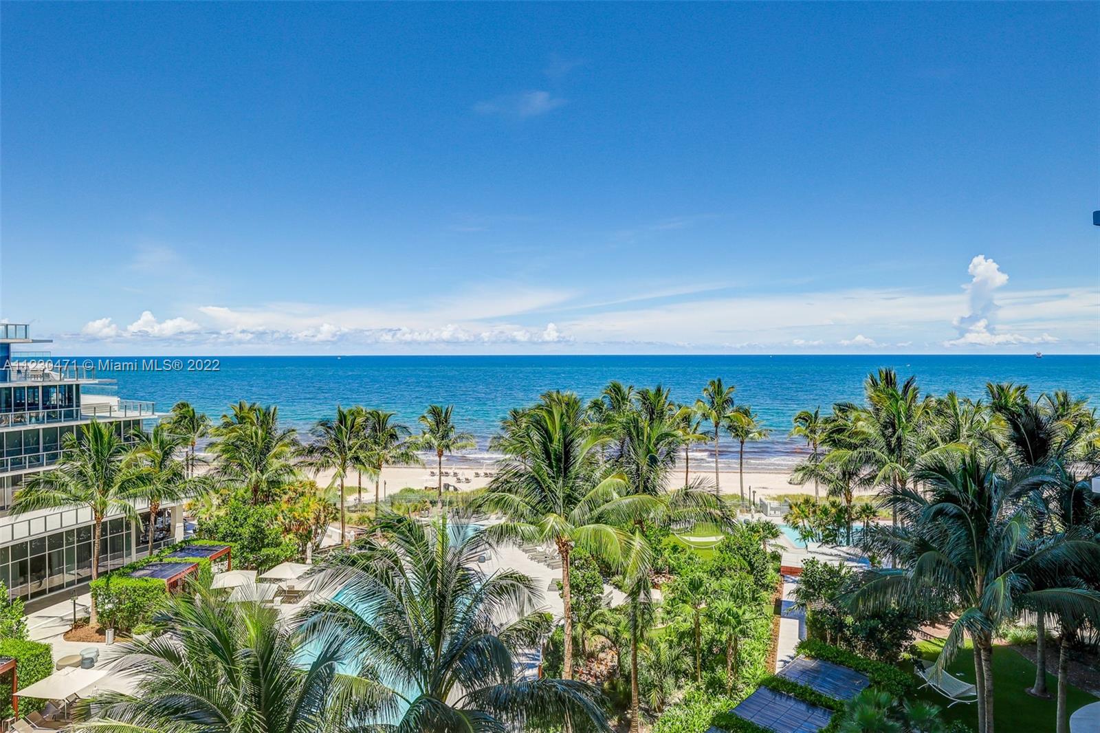 This is it! Spectacular Direct Oceanfront views, custom interiors, elegant and professionally designed turnkey residence. A one bedroom plus den that lives like a two bedroom! Custom designs through out all the spaces from built in living area, custom designed built in Primary suite and a den with a gorgeous built in murphy bed system with closet by Anima Domus. No expense spared on this pristine residence with sweeping views of the ocean. Located perfectly on the 5th floor, with unobstructed views of the ocean and lushly landscaped property. Luxurious resort lifestyle at Auberge Beach with onsite DUNE Restaurant and Spa, beach attendants, golf simulator, wine and cigar lounge and so much more! Move into this spectacular oceanfront property just in time for the season!