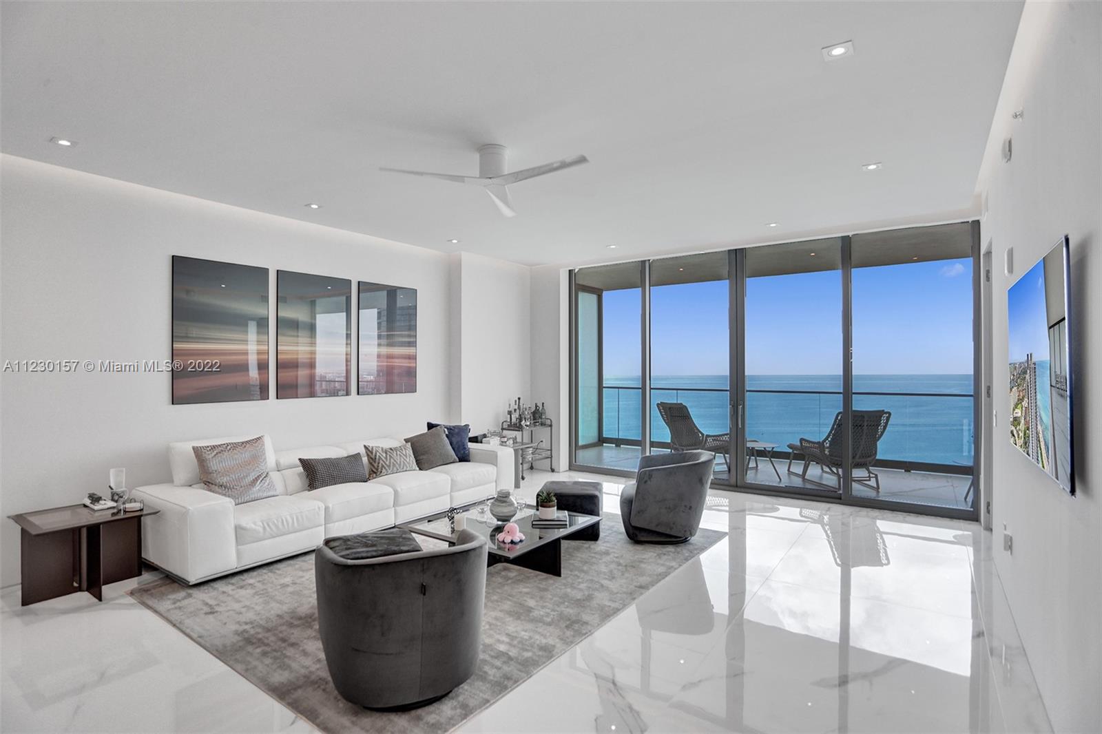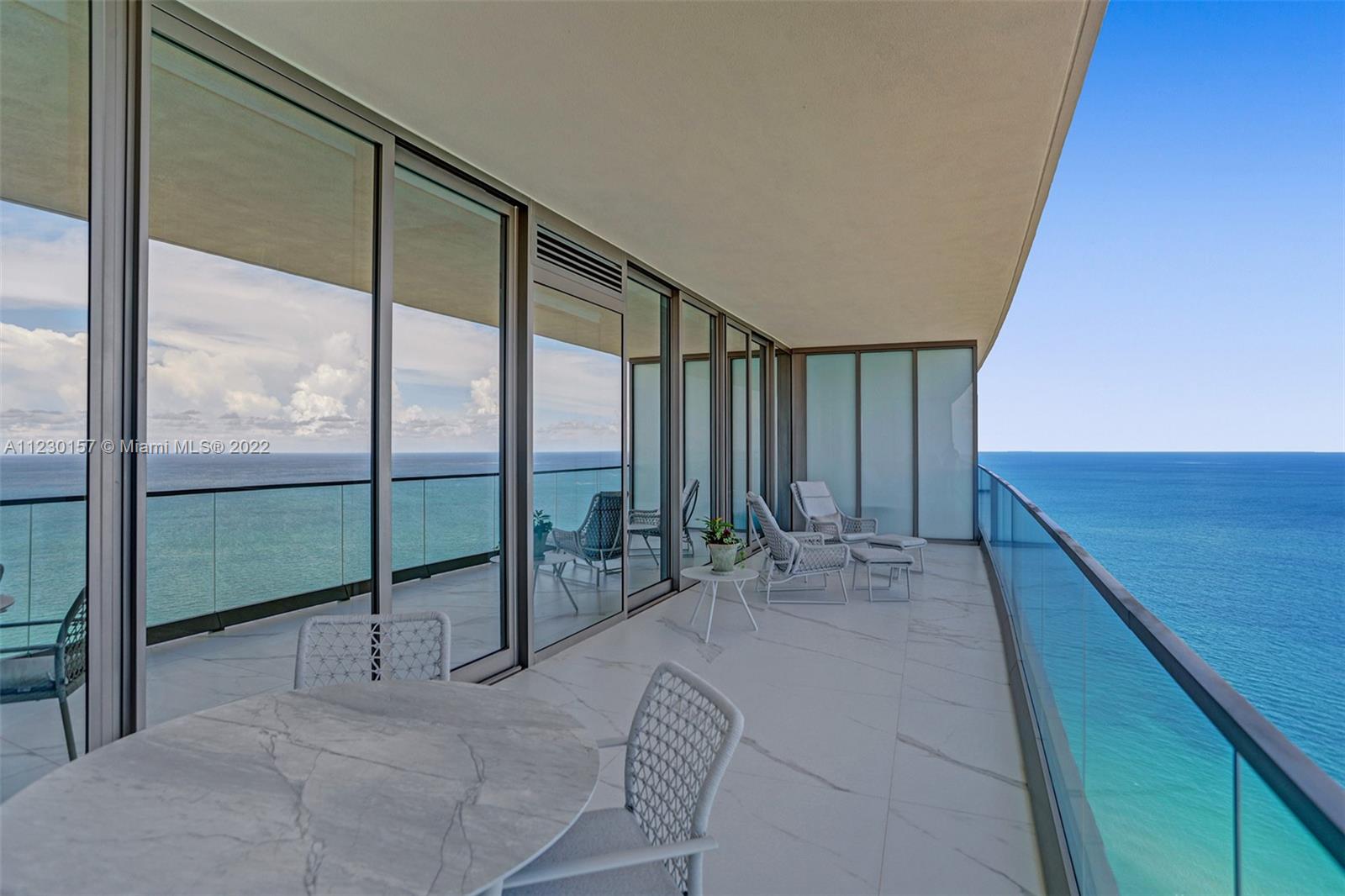 Enjoy elevated ocean-front living at the Residences by Armani Casa by world-class architect Cesar Pelli and interior design by the acclaimed fashion designer Giorgio Armani. This floor-through residence offers the best sunrises and sunsets from its spacious balconies that come equipped with an outdoor grill and refrigerator. This ready to move residence is tastefully decorated and has 3 beds + den with 3 1/2 baths, 10 ft. high ceilings, floor-to-ceiling glass windows; 10 ft. deep balconies, and an Armani designed Dada kitchen featuring Wolf Sub-Zero appliances, and spa-like marble-clad Armani Roca bathrooms. Residences by Armani Casa offers a full service restaurant, spa, gym, pilates, hair salon, theater, kids area, bar, beach services and much more.
