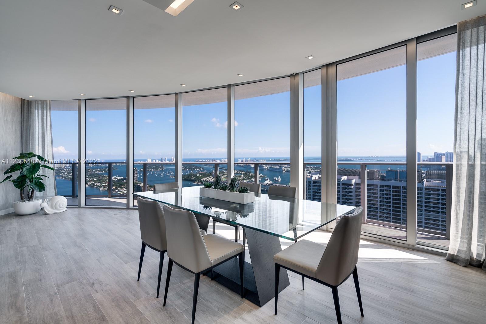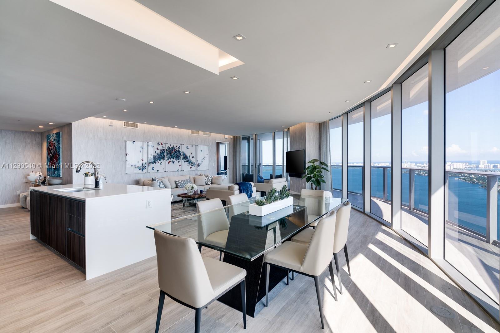 Immaculate southeast corner unit with direct bay, ocean and city views. Modern design, open plan living, high ceilings (9 ft), European-style kitchen, and modern Italian cabinetry. Private elevator and foyer. Floor-to-ceiling glass throughout w/ expansive wraparound terraces. Hot Edgewater location, walking distance to major supermarket, restaurants, local parks, recreation and short drive to the beach and downtown Miami. Building amenities include large pool deck overlooking Biscayne Bay, street level retail, 24-hour concierge, on-site security, controlled entry garage w/ assigned parking, state of the art fitness center, yoga studio, and BBQ areas with summer kitchen. Social areas include kids playroom, theater, teen lounge & conference room. Fantastic location and move in ready !