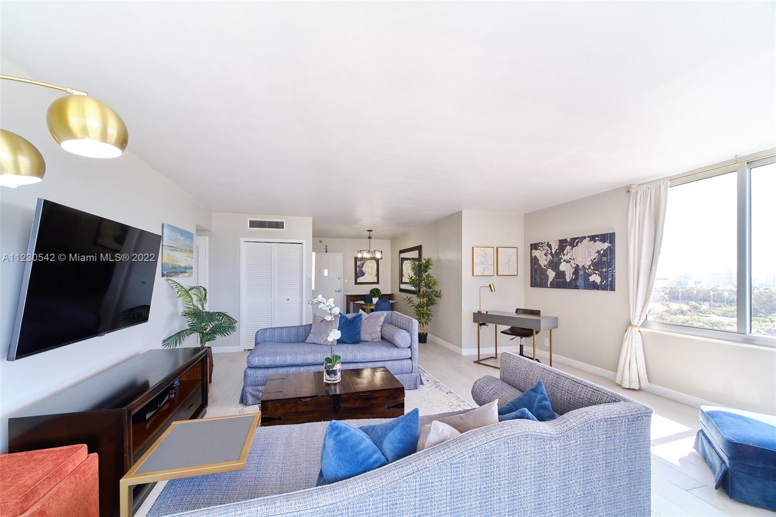 Renovated rare corner penthouse at Mirador North. Stunning panoramic ocean views. Spectacular sunrise from oversized 990 sq. ft. 1 bedroom/1.5 bath condo. Picture windows & full glass doors allows you to enjoy sunset colors also. High impact glass. Generous open balcony. 1 covered self parking included. Must see spacious living room. Granite kitchen counter & SS appliances. Fitness Center, Bayfront pool, BBQ area, Hot Tub, Community room w/Billiard, Ping Pong & board games. Convenience store on-site. Bike storage. Large pets welcome. Located within West Avenue Neighborhood in South Beach minutes from Whole Foods, Trader Joe's, Fresh Market, retail shops, Lincoln Road, restaurants & Beach. EZ access to highways & airport. 24 hr Lobby/Concierge. Current assessments paid by seller at closing.