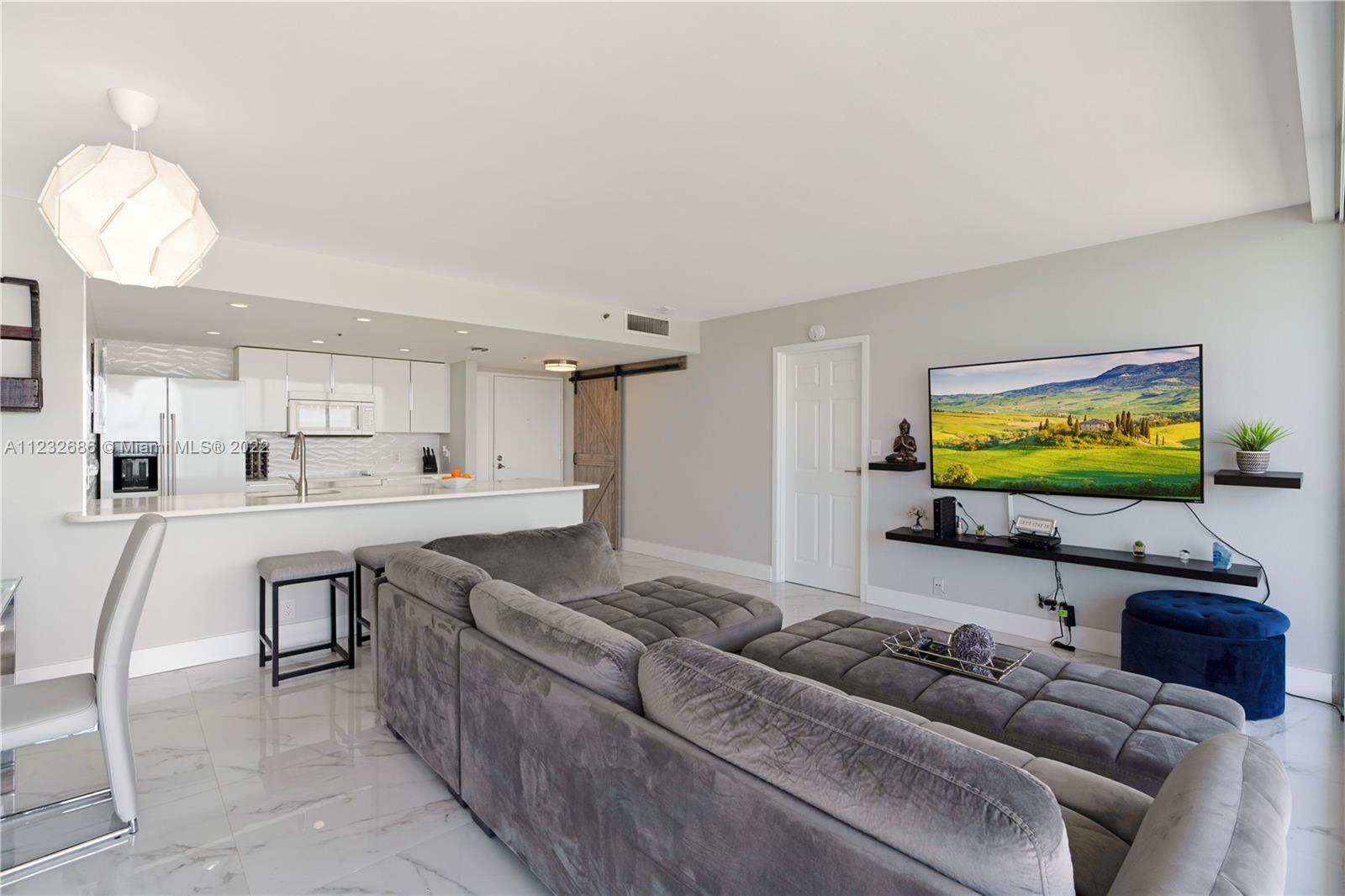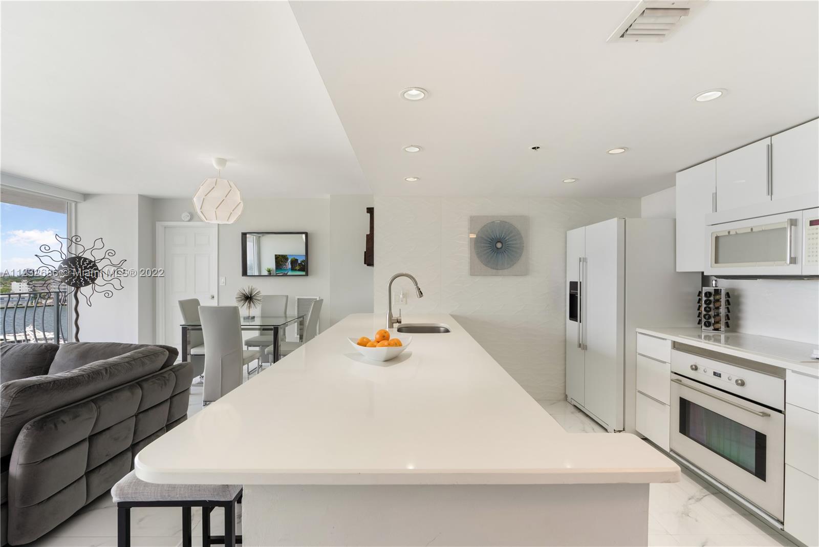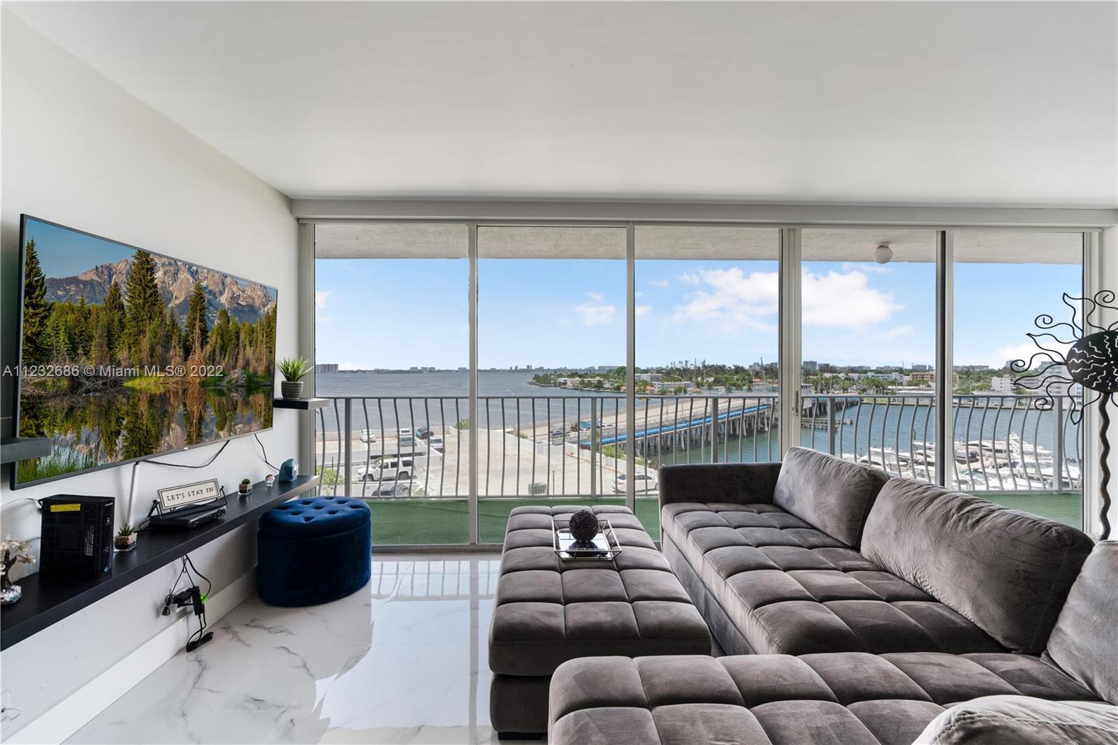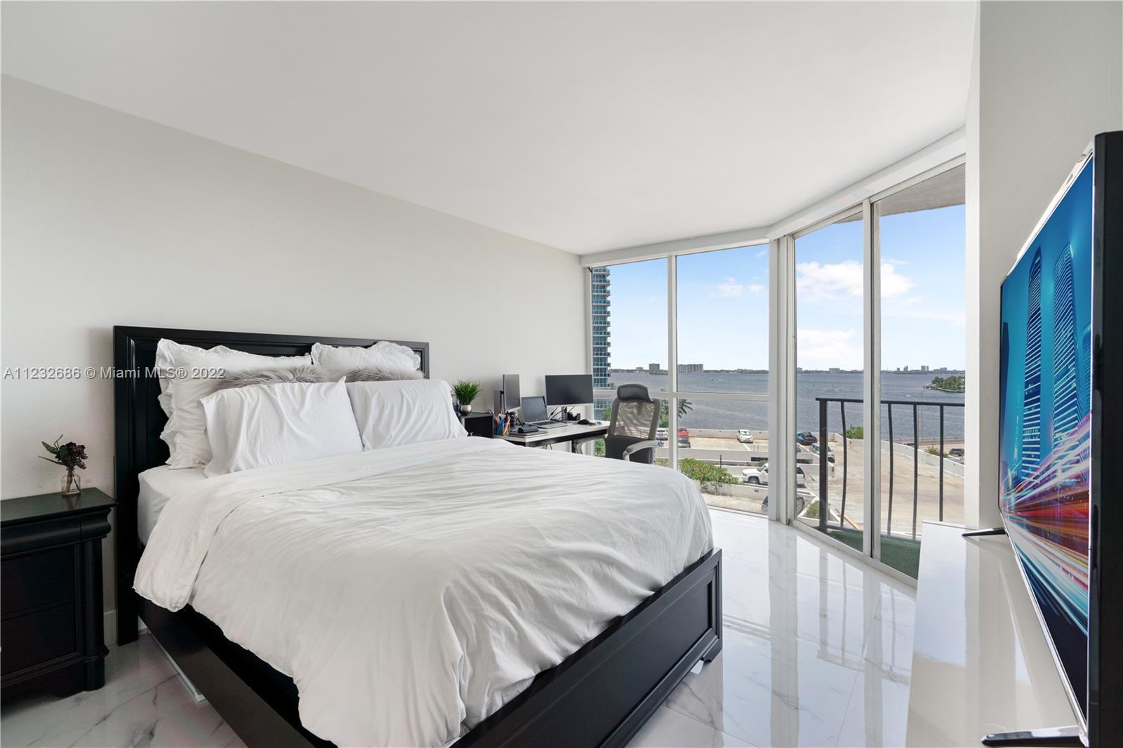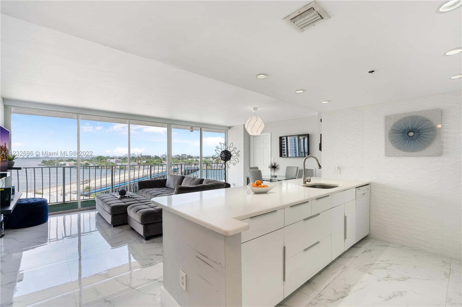 Come and fall in love with this renovated waterfront apartment in North Bay Village. This unit features stunning views of Biscayne Bay from every room. Modern upgrades to the unit include an open concept kitchen with quartz countertops, white porcelain tiles, motorized blinds, and floor-to-ceiling glass doors in every room. Both bedrooms have in-suite bathrooms with walk-in closets and there is a washer and dryer in the unit. Two parking spaces included. The building is also full of amenities; pool, cafeteria, beauty salon, gym, restaurant, and private marina. North Bay Village is the perfect central location close to all the action. The island is located between Miami Beach & Downtown Miami/Design District and equidistant to both Miami & Fort Lauderdale airports.