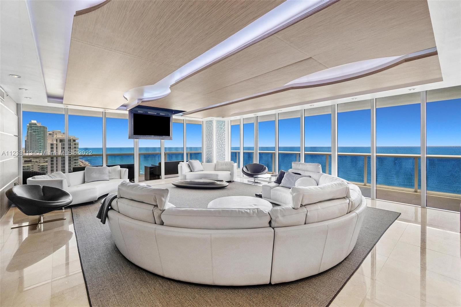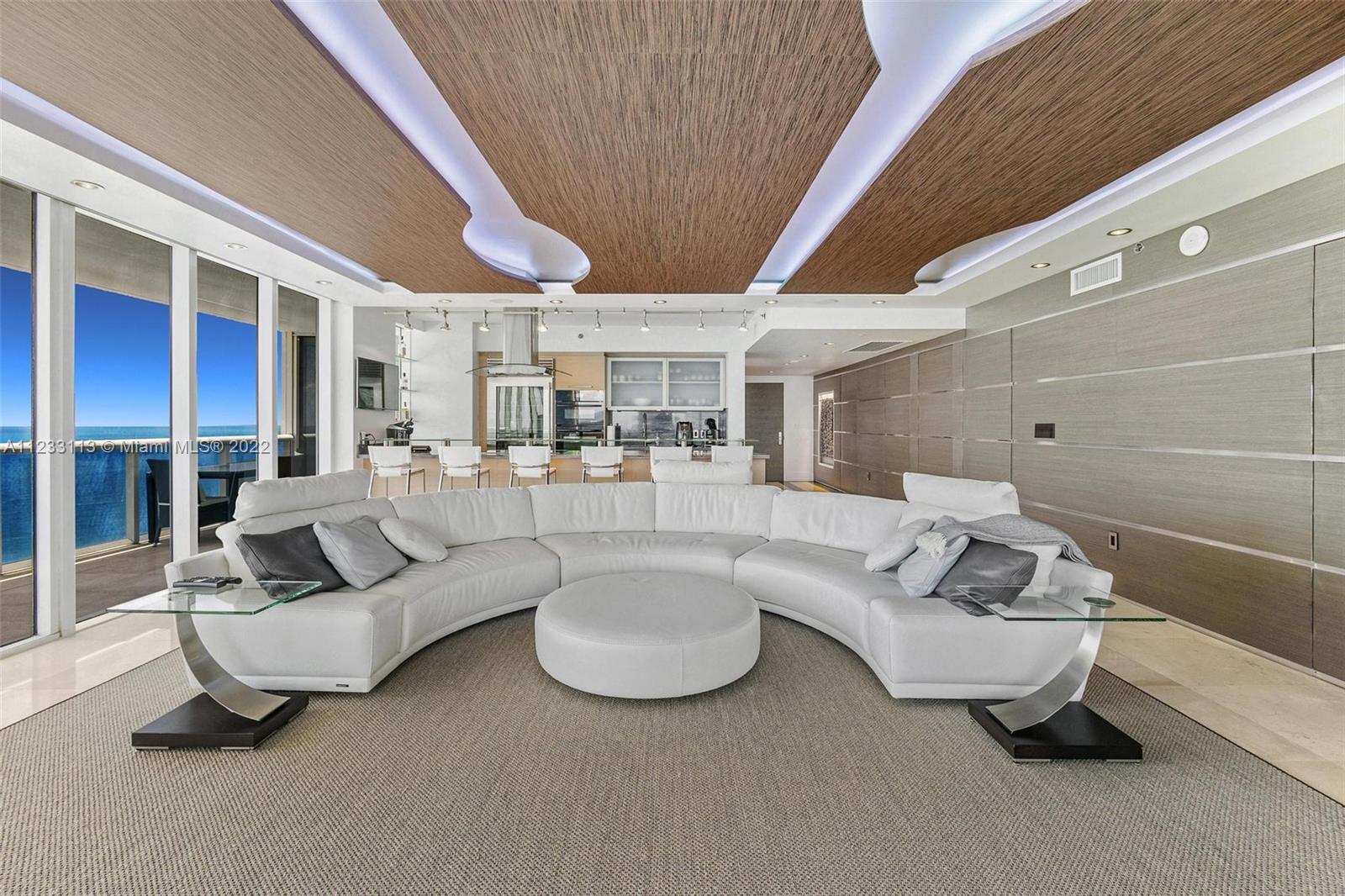 Truly UNIQUE Turnkey NE Corner Unit by well-known Interior Designer! 270 degrees direct Ocean Views surround this One-of-a-Kind Entertainment living room w/ floating ceiling, remote controlled i-player LED 3 color Kinetics lighting. It is the Most updated unit at Beach Club on market today with custom Designer details throughout, wood-paneled walls & marble flooring, Interlam wall panels, SMART system, electric shades, recess lighting, Roche Boboise furniture & much more! Primary Bedroom Suite has built-in furniture, his & hers dressing rooms, built-in walk-in closets, Remodeled kitchen w Subzero refrigerator & induction cooktop. 5-star resort-like amenities, a magnificent 2-story lobby entrance, security, 24-hour valet, 5 heated pools, 50.000 sq. ft. SPA & gym overlooking the Ocean.