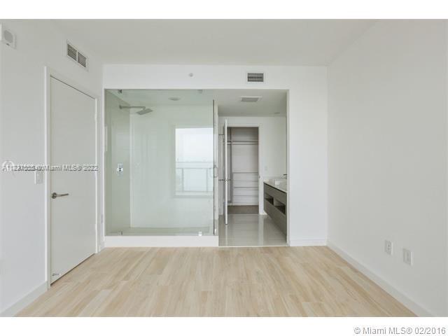 Unobstructed direct views of Biscayne Bay and Miami Beach. Facing directly east - enjoy beautiful sunrises overlooking the bay! This 2 bedroom and 2 bath feature porcelain floors, built-in closets, a large balcony, impact windows, and a lot of natural light. Private foyer entrance!! Exclusive building with state-of-the-art amenities, bay front park, gym, pool, sauna, and party room.