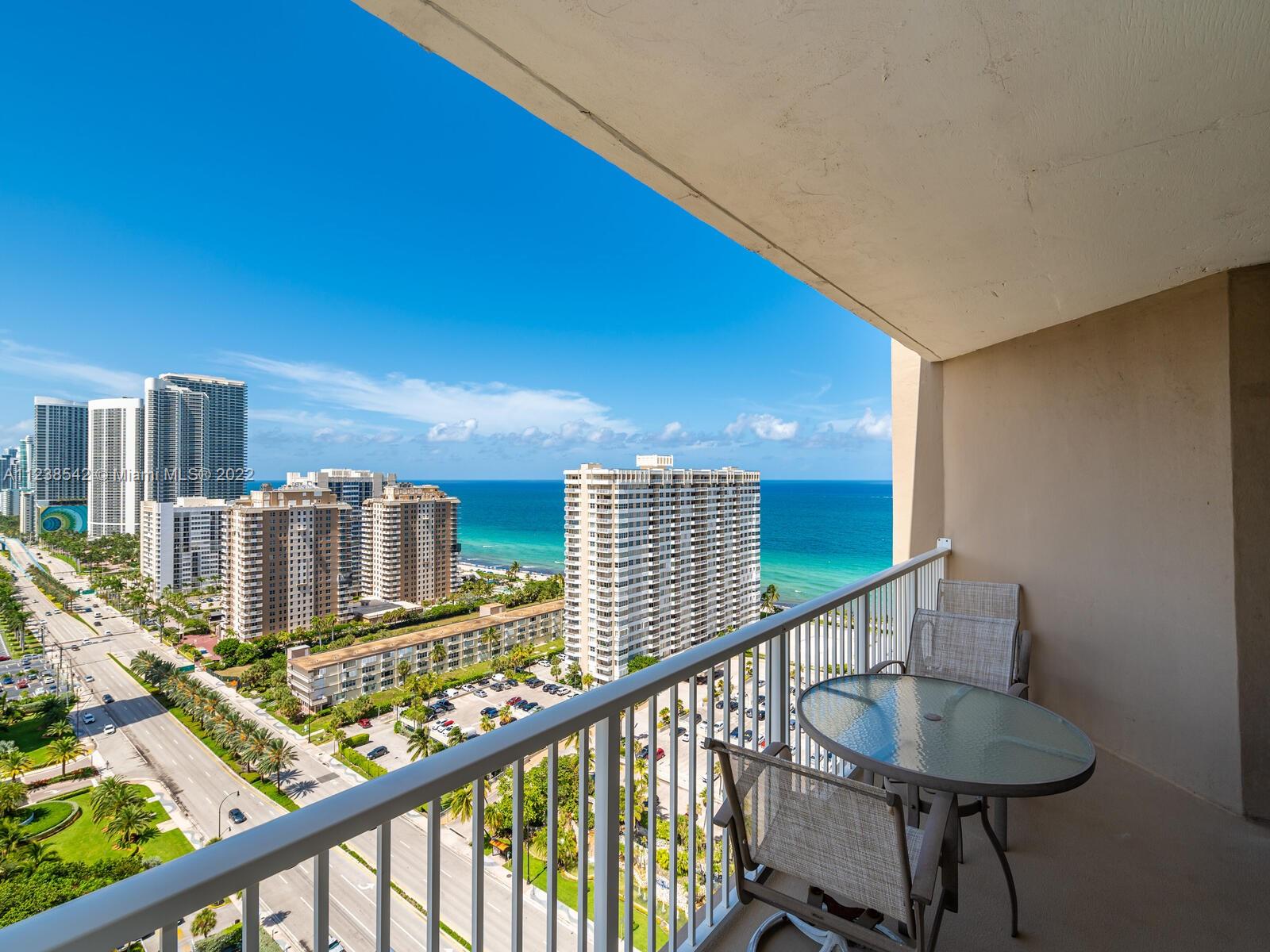 Penthouse > Bird's Eye Views>Ocean, City, and Intra! Upgraded 1br 1.5 bath, largest 1 Br plan. 2 Sets Glass Sliders to enhance Views from Br and Living Area. Great Terrace for entertaining or just enjoying Sunrises and Sunsets. Impact Doors/Windows, Impeccable Move in Condition. Owner to Pay Assessmen in Full prior to Closing. Maint Inc's Wifi, Internet, A/C, Hot/Cold Water, Parking ,Security, Valet, Amenities and more! Superior Amenities: Snack Bar, Beach Service, Pools, Rest's/Bar, Gyms, Tennis, Boat Docks, Salon, Mini Marts, BBQ and more! Great for Full or Part Time use, like being on vacation on a full time basis. Great Central Location, near Shopping, Malls, Casinos, Gulfstream, Aventura Mall, Bal Harbor Shops etc. Between FLL and Miami Airports and Seaports. Convenient Location!