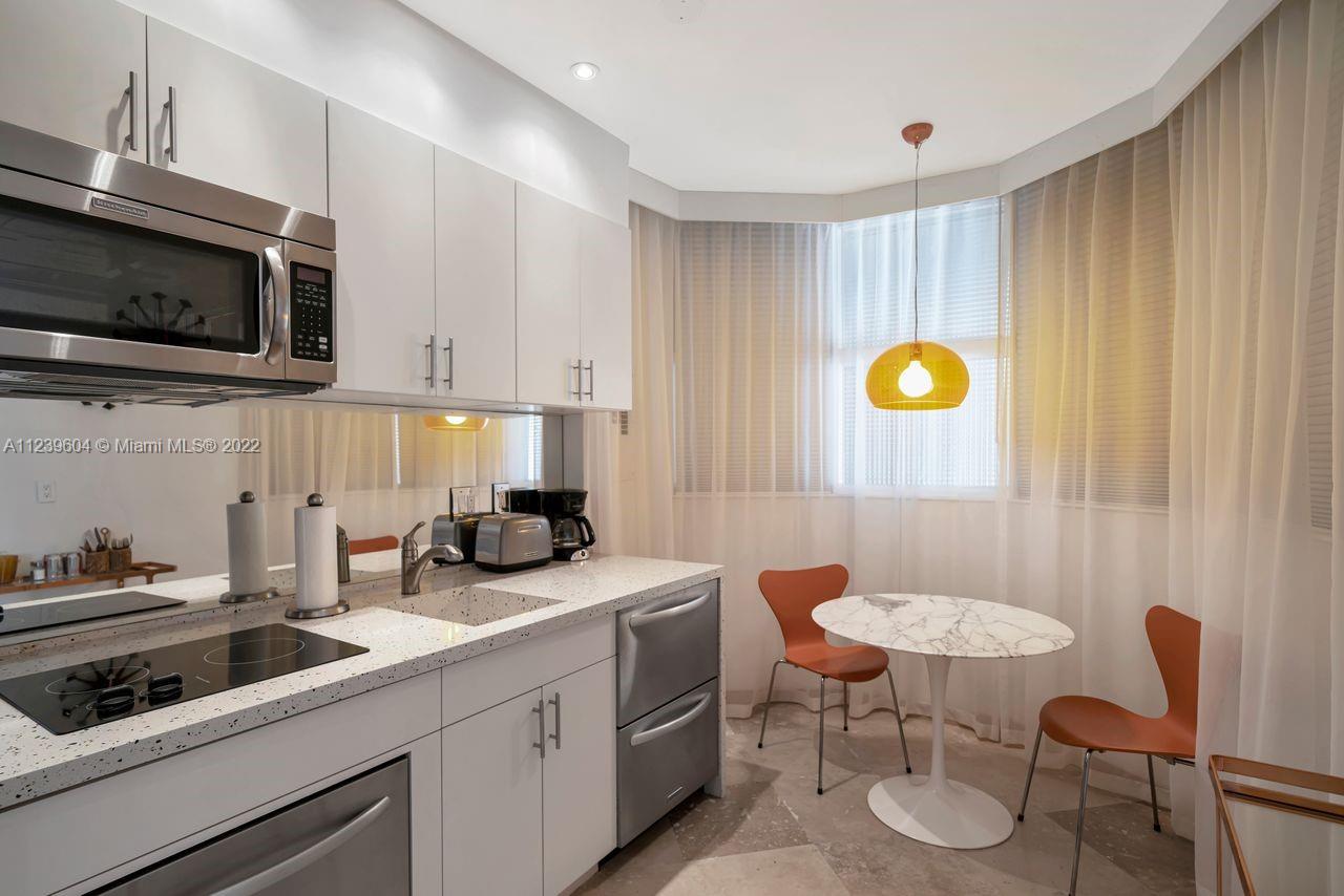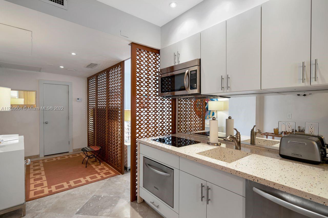 Rarely available studio 1F. Beautiful Art Deco and Midcentury designed studio apartment at Belle Isle's Iconic and desirable Belle Towers. This rarely available unit features complete renovation and custom woodwork accents. This modern designed and beautifully furnished studio is perfect for a guest suite or pied a terre. Belle Towers offers a 24 hour lobby attendant, Valet, beautiful waterfront pool, bike storage, fitness room, extra storage and parking. Belle Isle offers a quick and convenient access to Miami Beach's famous Lincoln Road Shops, local restaurants & shopping in Sunset Harbor and access to more outdoor and water activities. Belle Isle is also home to the Iconic Standard Hotel located right next to Belle Towers.