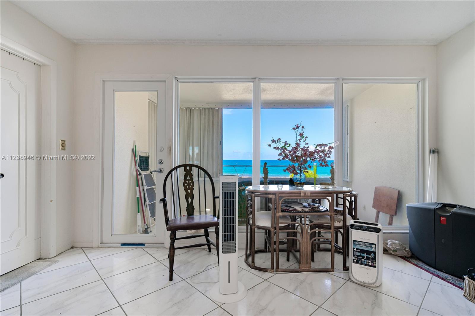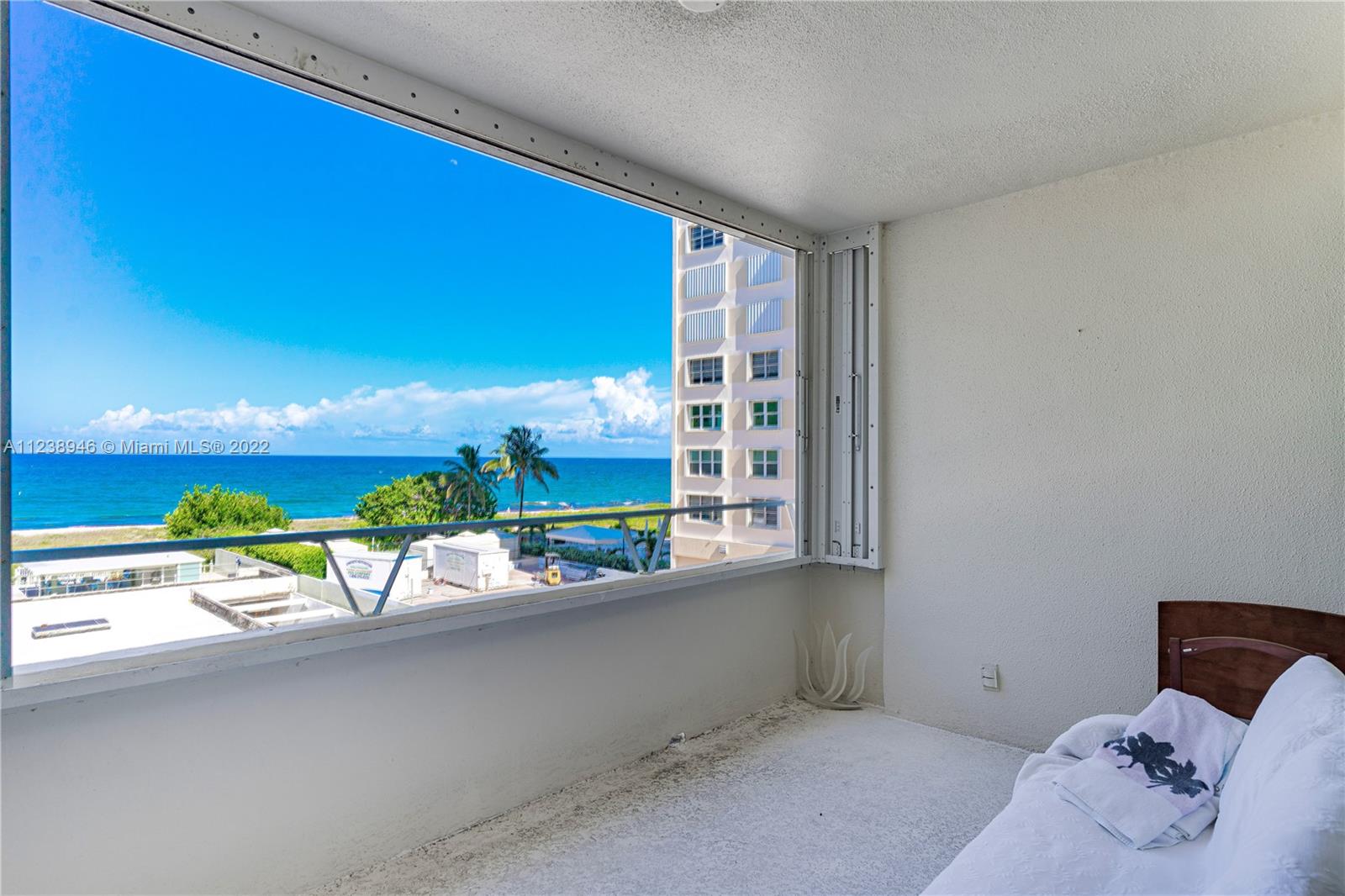 MOTIVATED SELLER, MUST SELL. Direct ocean view as soon as you walk through the doors of this 2 bedrooms 2 baths apartment. Space is ready to be upgraded to your taste. All hurricane impact glass throughout. Oceanfront building with direct beach access, oceanfront pool, bbq area, common laundry room on each floor, and secured attended lobby. Covered assigned carport space #49. Detached storage space room. Building is conveniently located close to supermarkets, and restaurants. Monthly association fee is $1,132 which includes monthly maintenance ($608), cable, building insurance, land lease fee, and property taxes. See budget attached for breakdown. There is a land lease in place until 2063.