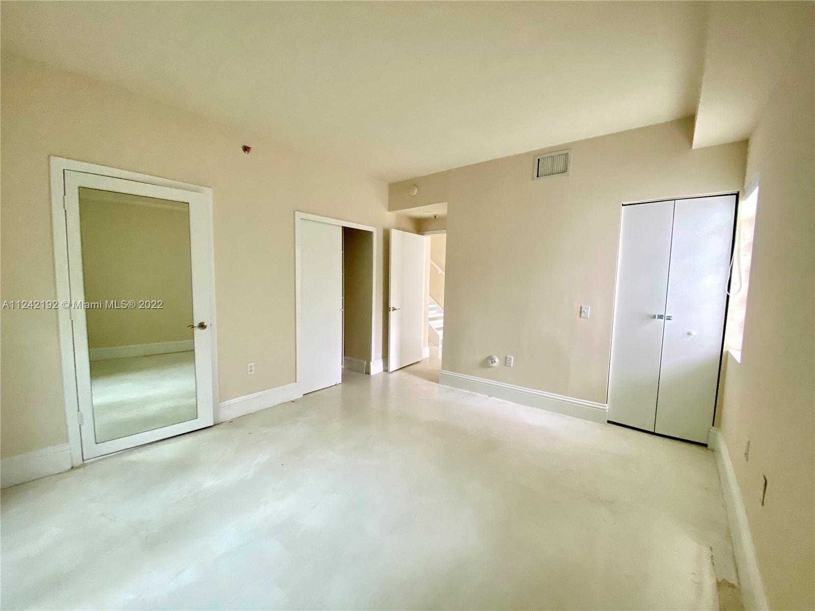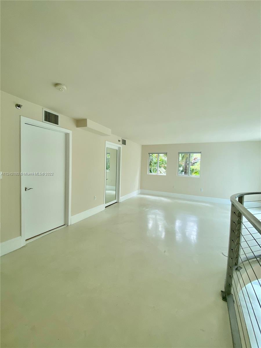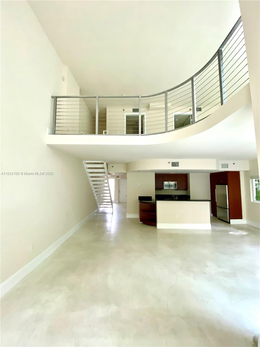 Spacious loft style on 2 levels, master bedroom and bath upstairs, featuring concrete floor, private balcony , stainless steel appliances, 2 parking garage spaces, common pool