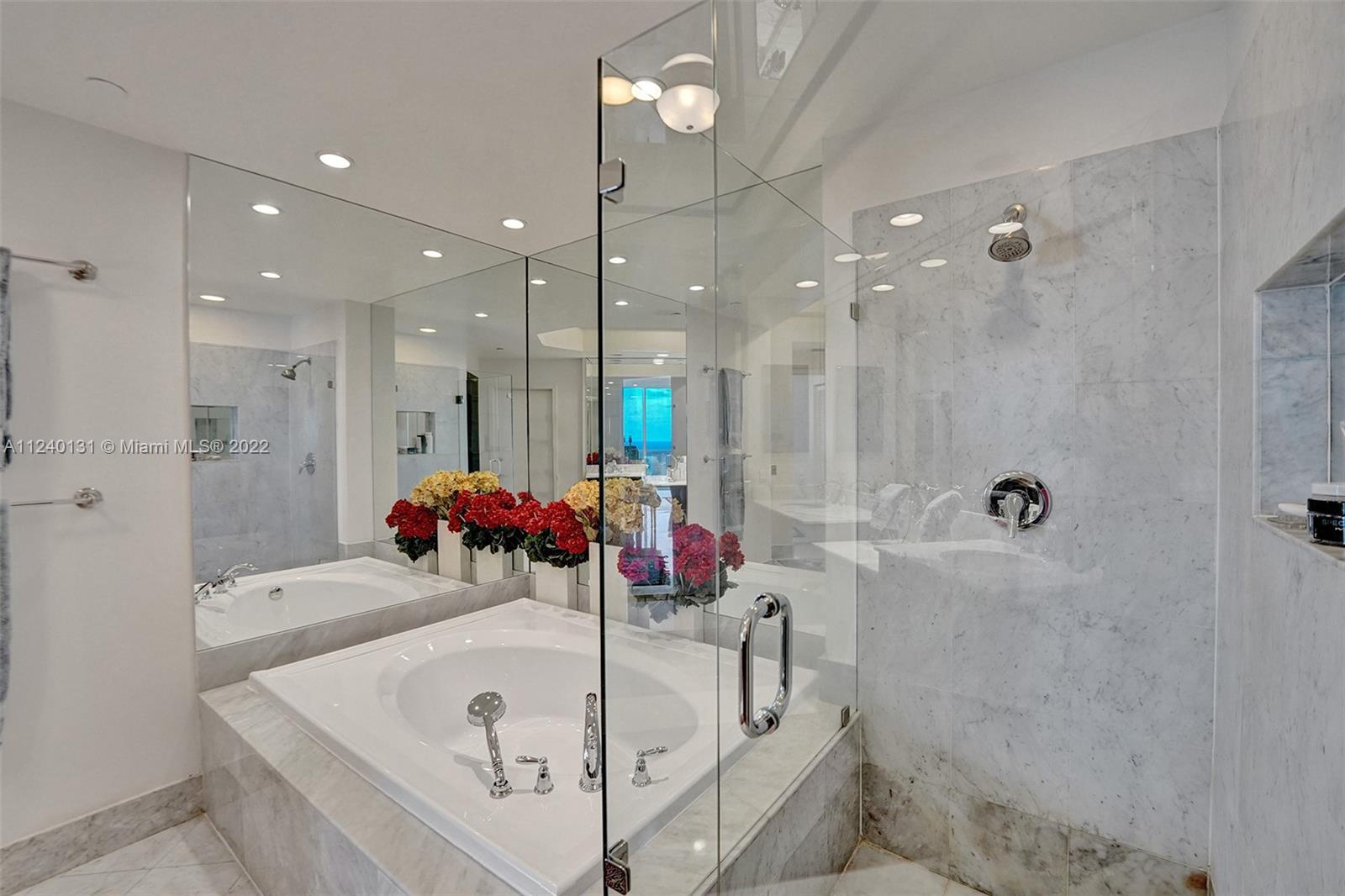 First time on the market! Architecturally designed three bedroom Tower Suite 27th floor BISCAYNE MODEL apartment with soaring 10 foot high ceilings. Atlantic Ocean views galore from every window. Features include HIGH IMPACT WINDOWS, marble floors, Hunter Douglas shades, recessed lights, ceiling mounted speakers, custom closet interiors and upgraded kitchen appliances. Custom mill work can be found throughout apartment. Third bedroom custom designed as a library with beautiful mahogany wood floors and coffered ceilings. Second bedroom includes custom built closets. Additional walk in closet in Master area. Enjoy side by side full sized parking spaces in garage. One Island Place is a full service luxury building situated on 8 acres in the heart of Aventura.