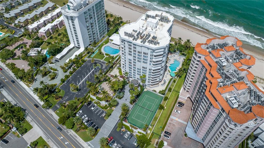 Meticulously kept ocean front condo unit with stunning water and city views. Comfortable layout with multiple living and entertaining areas. Split bedroom floorplan offering comfort and privacy. Oversized primary bedroom facing East with direct ocean views, en-suite bathroom and spacious closets. The two secondary bedrooms are situated on the opposite side overlooking the city where you can also enjoy beautiful sunsets from. Light and bright kitchen with pantry and access to secondary balcony for sparkly nightlights and warm sunset views. Well maintained, pet friendly building with one garage parking spot assigned. Updated common areas, pool, tennis court, gym and private beach to enjoy all that south Florida has to offer.