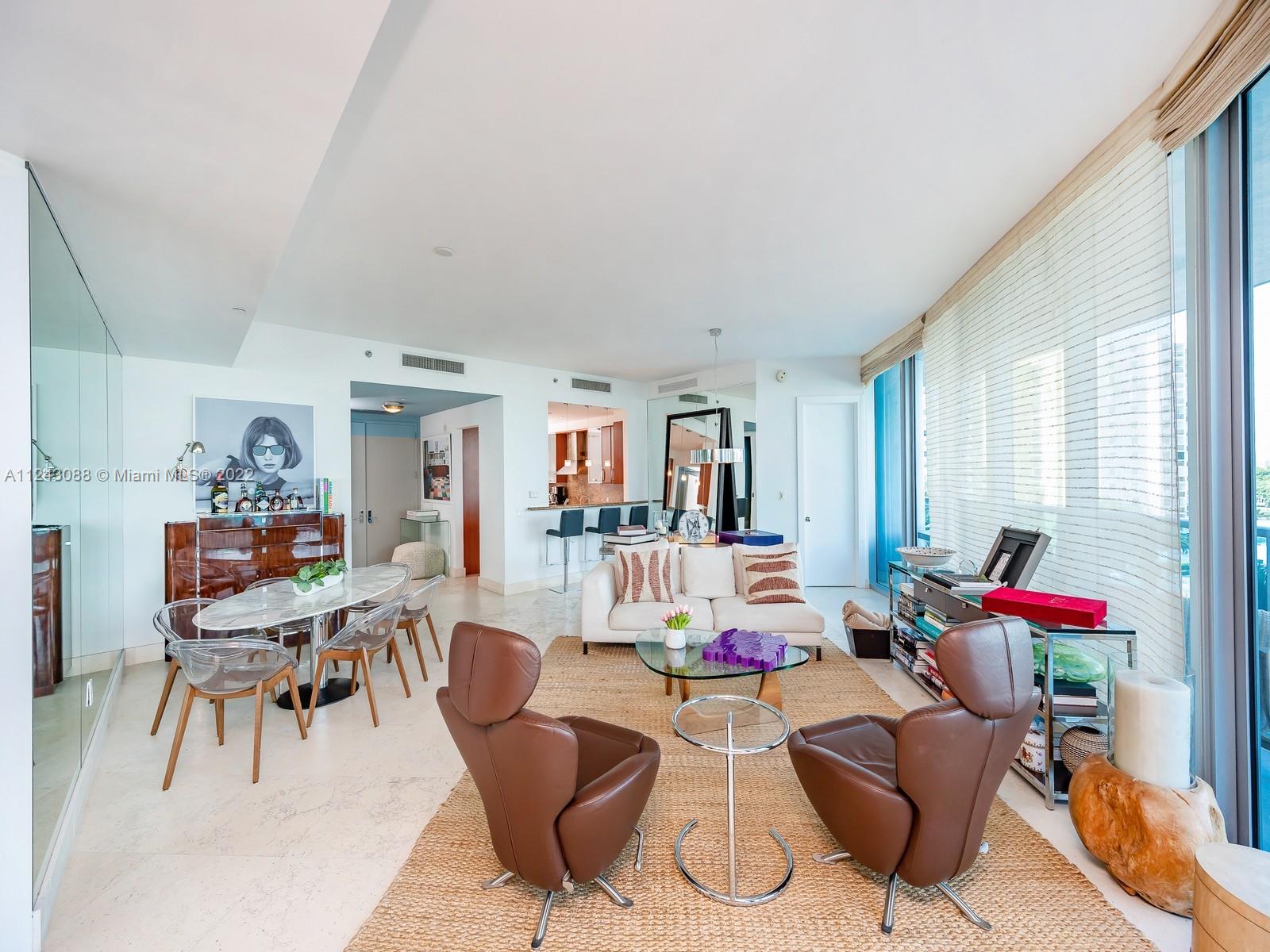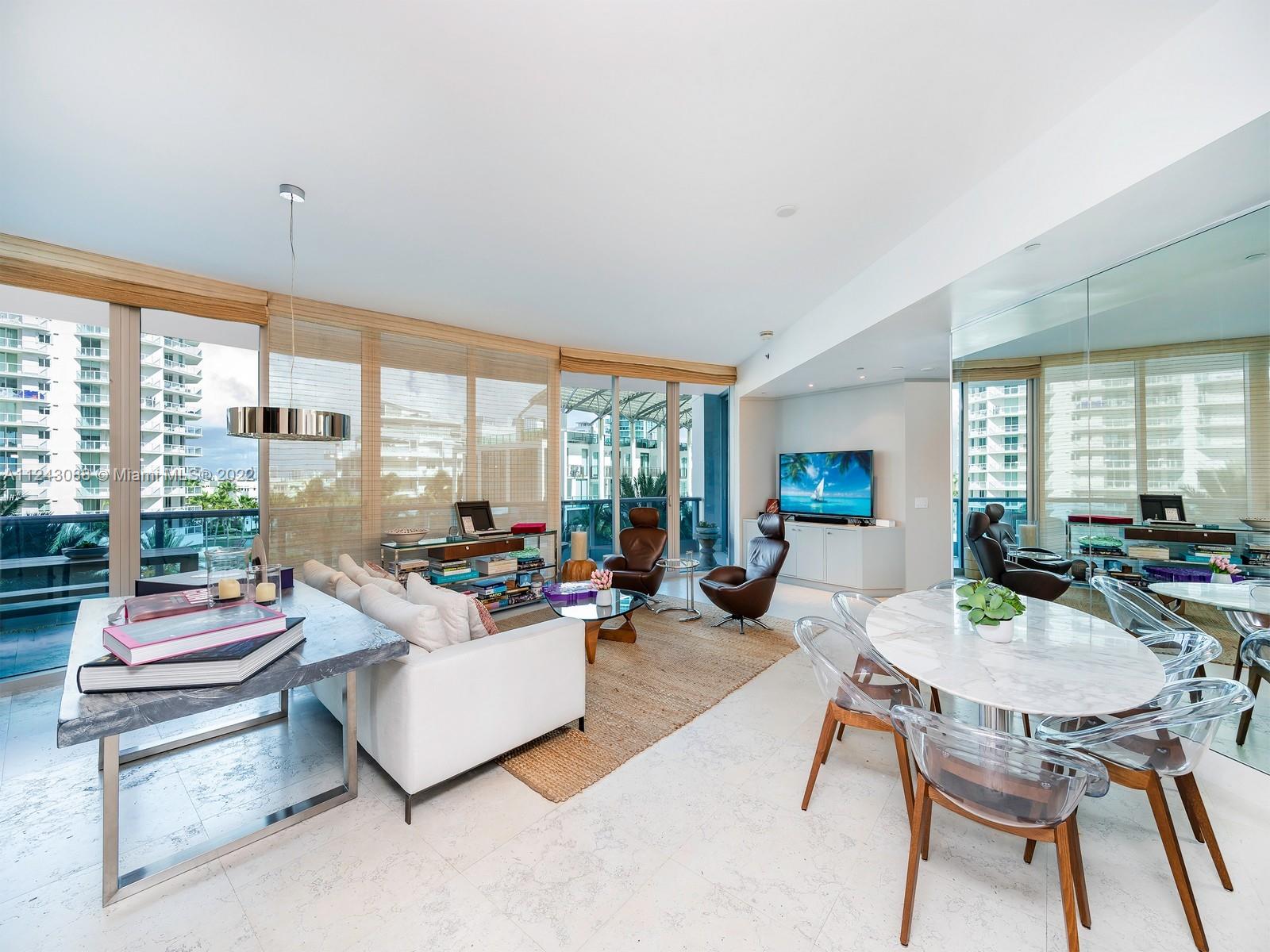 Expansive 2,059 SF unit at the exclusive Bath Club Miami Beach. This 2 bedroom + maid room/ 3 bathroom unit has been updated from the original 2 bed/2.5 bath floorplan and features open dining and living room areas with marble floors throughout, as well as top of the line kitchen with wine cellar, Miele appliances, Subzero refrigerator and Aran World Cabinets. Master suite offers built in office, walk in closet, and bathroom with shower and Jacuzzi. Second bedroom has been updated with two murphy beds by German designer in addition to queen size bed. Unit also offers additional Service room/Den and full bathroom. The Residences at The Bath Club provides 5 Star Resort Amenities such as Tennis Courts, Full Service Pool & Beach Club, Gym, Spa, Concierge, Security, Valet.