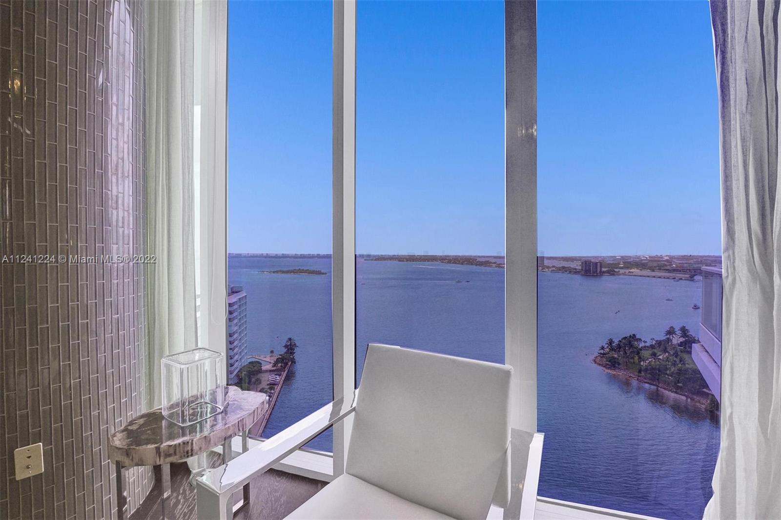 SPECTACULARLY & THOUGHTFULLY DESIGNED, UNIQUE HGTV URBAN OASIS WINNING UNIT. FULLY FURNISHED 2BD/2.5BA CORNER UNIT AT LUXURIOUS PARAMOUNT BAY! THIS BRIGHT AND RARELY AVAILABLE 01 LINE UNIT FEATURES 10 FT HIGH- FLOOR TO CEILING WINDOWS WITH COMPLETELY UNOBSTRUCTED 180 DEGREE VIEWS OF BISCAYNE BAY AND THE MIAMI SKYLINE. ENJOY YOUR PRIVACY WITH PRIVATE ELEVATOR, OPEN KITCHEN, BUILT IN WINE COOLER, & A LAUNDRY ROOM. AMENITIES INCLUDE A ROOM SERVICE MENU, CONCIERGE, 24HR FRONT DESK, SUNRISE AND SUNSET POOLS WITH CABANA, WATER-VIEW GYM, PILATES , SPA, VALET PARKING, GAME ROOM AND A WATERFRONT BANQUET ROOM. CENTRALLY LOCATED CLOSE TO ARSHT CENTER , MARGARET PACE PARK, MARINA, PUBLIX, MIAMI DESIGN DISTRICT, WYNWOOD, BRICKELL, SOBE AND MIAMI AIRPORT. THE UNIT IS SPARKLING CLEAN & FRESHLY PAINTED.