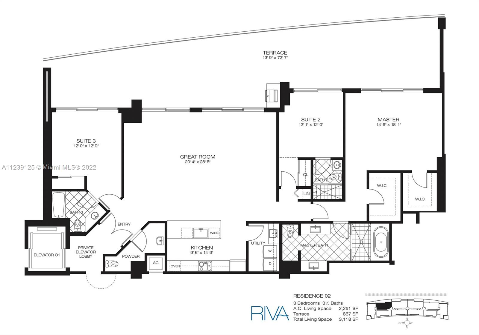 Enjoy the Perfect Indoor/Outdoor Lifestyle at this Exquisite Waterfront RIVA Residence Providing Stunning Water Views from Every Room and over 800 SF of Private Terrace w/BBQ. 3 Bed, 3.5 Bath w/Custom Upgrades, Lighting, Chef’s Kitchen w/ Wolf Gas Cooktop, Sub-Zero Fridge & Wine Cooler, Pantry/Laundry Room, Huge Primary Suite w/2 Walk-Ins & Spa Bath. Direct Elevator Entry, 2 Parking Spaces & 2 Lockers. Available Boat Slip Lease with Lift. 40,000 SF of Amenities: Pool & Lounge Overlooking Middle River, 7,000 SF Gym w/ Yoga Studio, Resort Style Spa w/Sauna, Steam & Massage Rooms, Resident’s Lounge, Sunset Deck, Jacuzzi, Catering Kitchen, 3 Suites for Additional Guests, 24/7 Front Desk, Valet, 2 Dog Walks, 400' of Waterfront & Central Location.