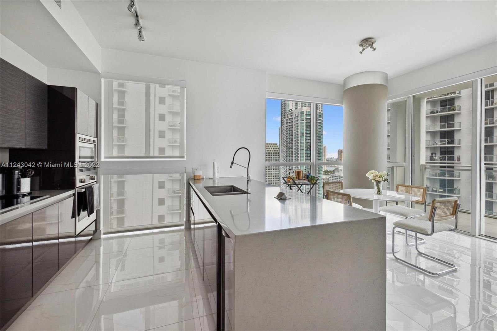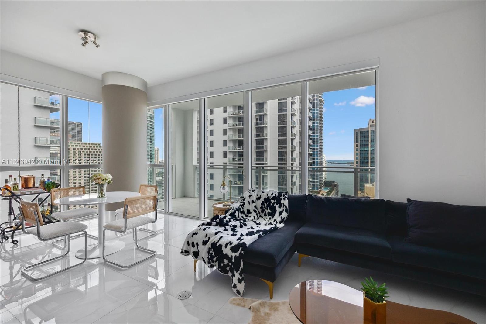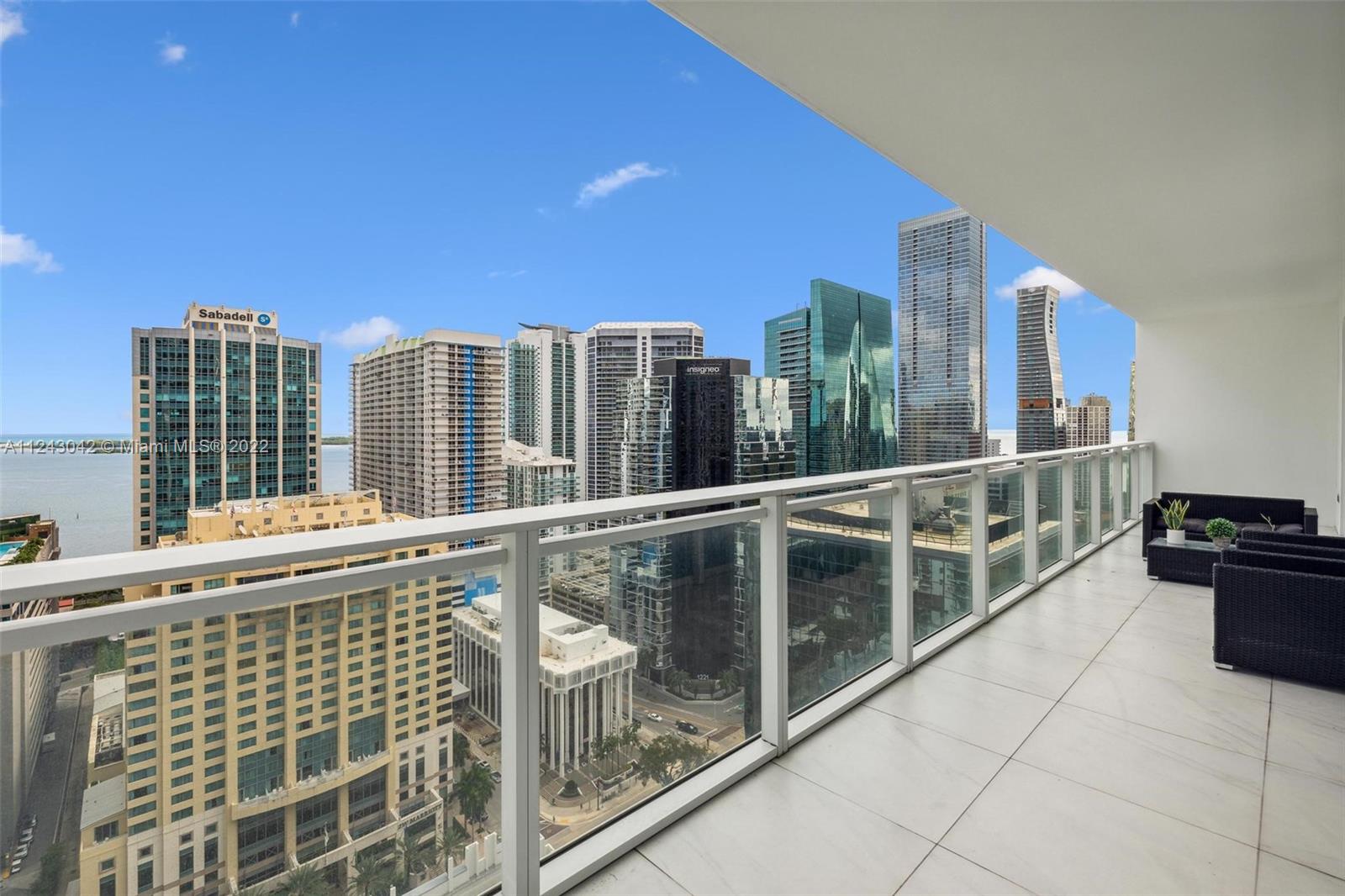 Priced to sell, best line in the building! Spectacular city and Bay view from the 28 floor. Beautiful and spacious 2 bed/ 2 bath with 9 ft ceilings. Corner unit. Italian porcelain floor. Designer kitchen cabinetry w/ Bosch appliances, wine cooler and modern cooking isle great for entertaining. Large master suite w/ plenty of closet space. Window screens and black outs thru out. Extra large balcony w / view of the Bay and City. Great option to live or as an investment to rent out. All amenity building with a touch of class and elegance. Amenities include a beautiful pool area, cabanas, outdoor fireplace,BBQ area,club room, childrens play room,fitness center,valet,concierge and business center. This is the best Brickell Ave has to offer. Located right in the center of the financial district.