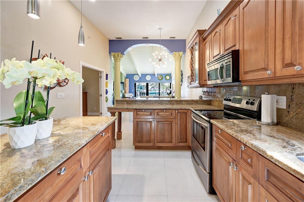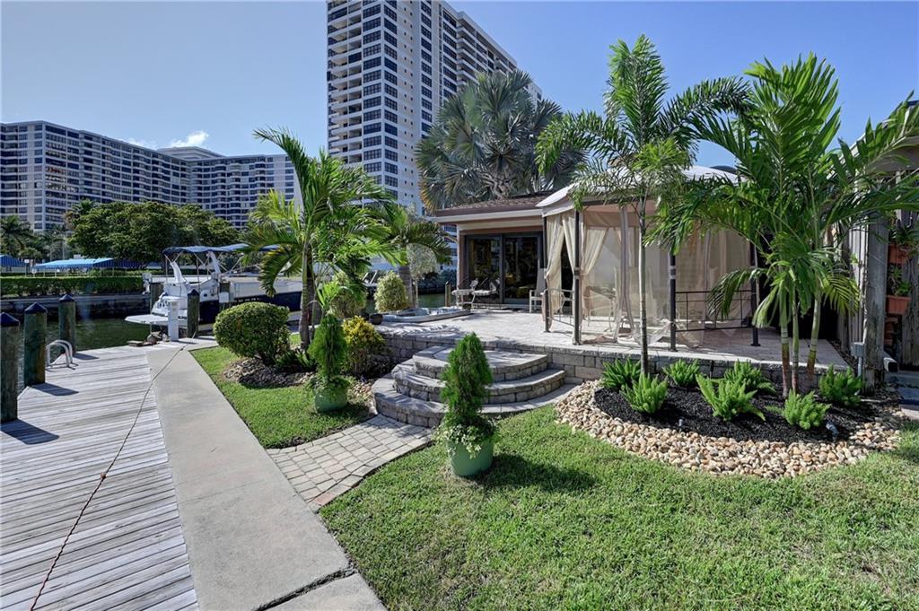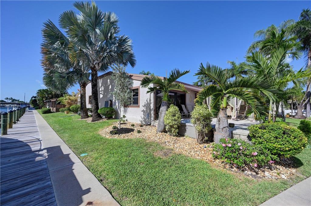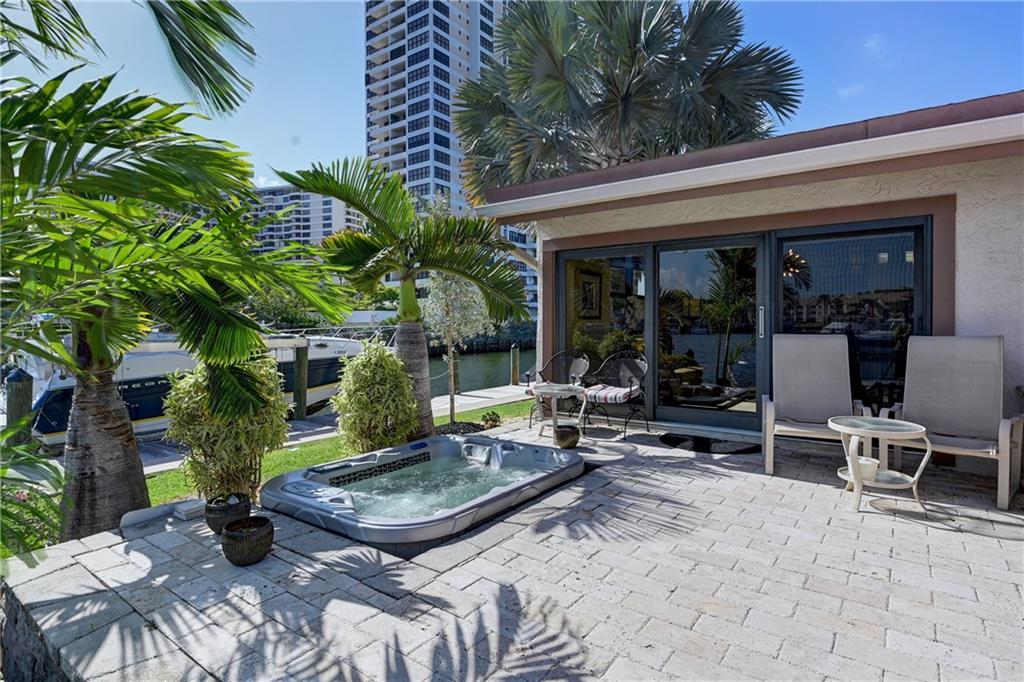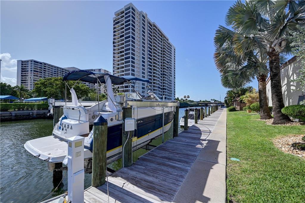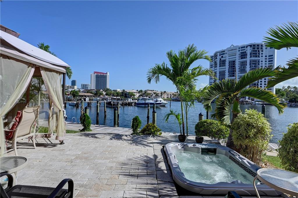 ATTENTION BOATERS!! This corner waterfront 3-bedroom, 2-bathroom villa is the jewel of community. No other residence in Harbourwood Villas offers this much dock space, 130+ feet, to be exact. Your private L-shaped dock is located immediately behind the property and has 94 feet on one side with a 24,000 LB boat lift and 42 feet on the other. With no fixed bridges and easy ocean access, this villa is truly a boater's dream with enough space to accommodate multiple boats. Offered turnkey and fully furnished, this villa is tastefully updated with porcelain flooring, granite kitchen with stainless steel appliances, and impact windows. Your private waterfront patio is perfect for entertaining and features a built-in jacuzzi and gazebo. 2 assigned parking spaces. Simply the best! Welcome home!