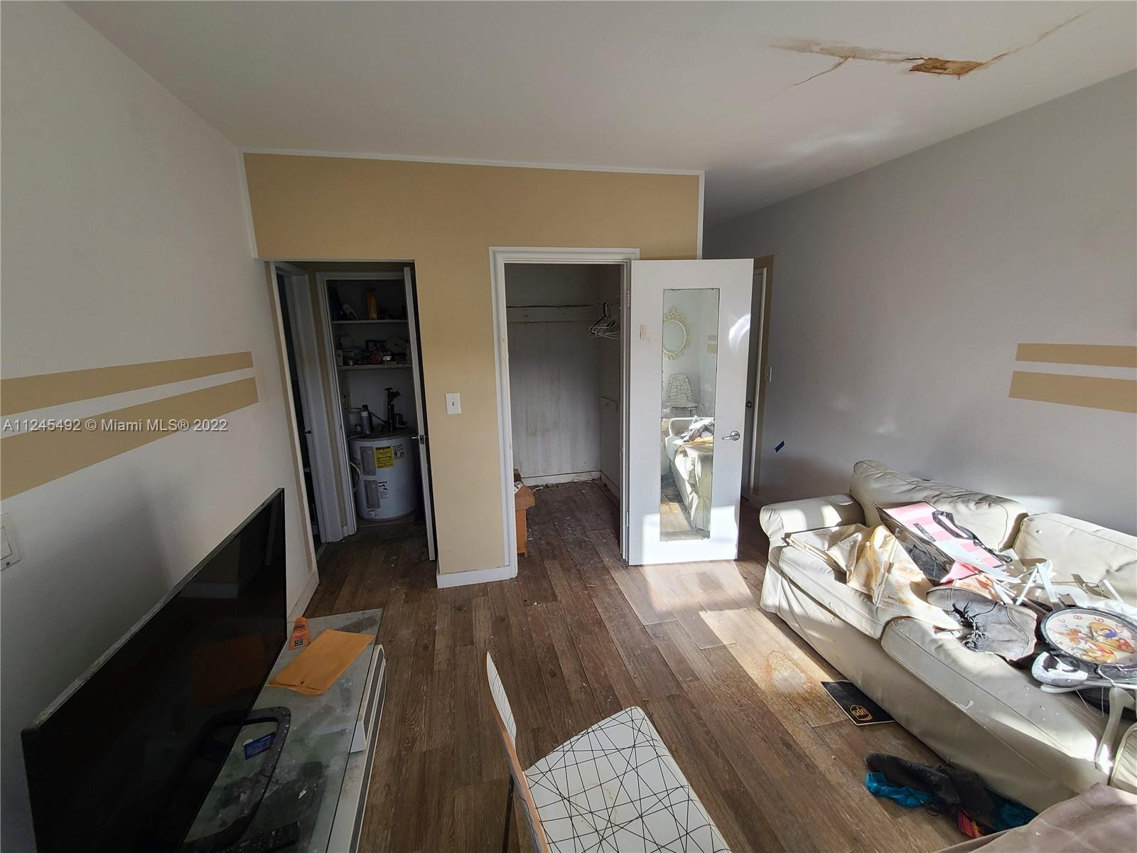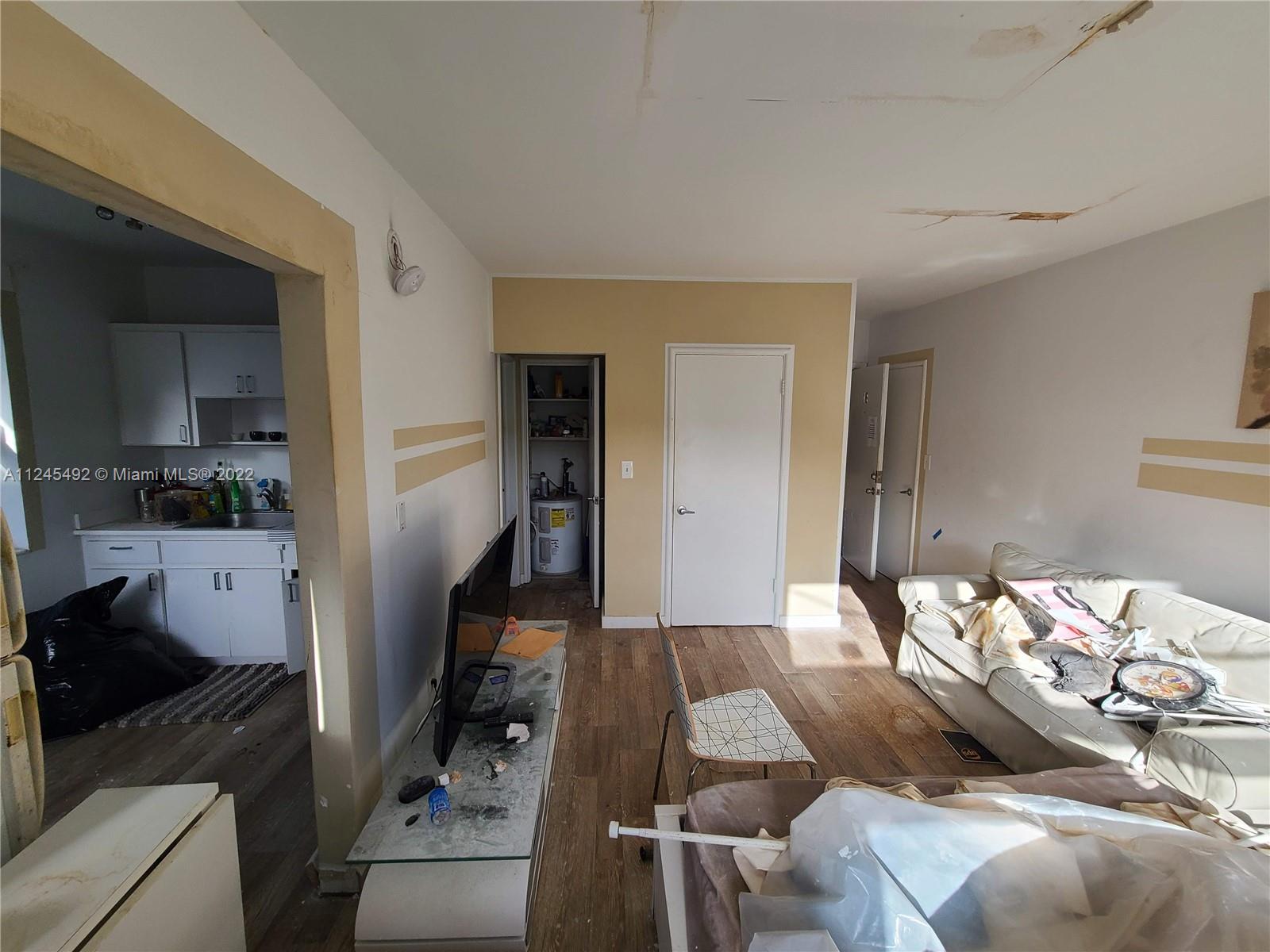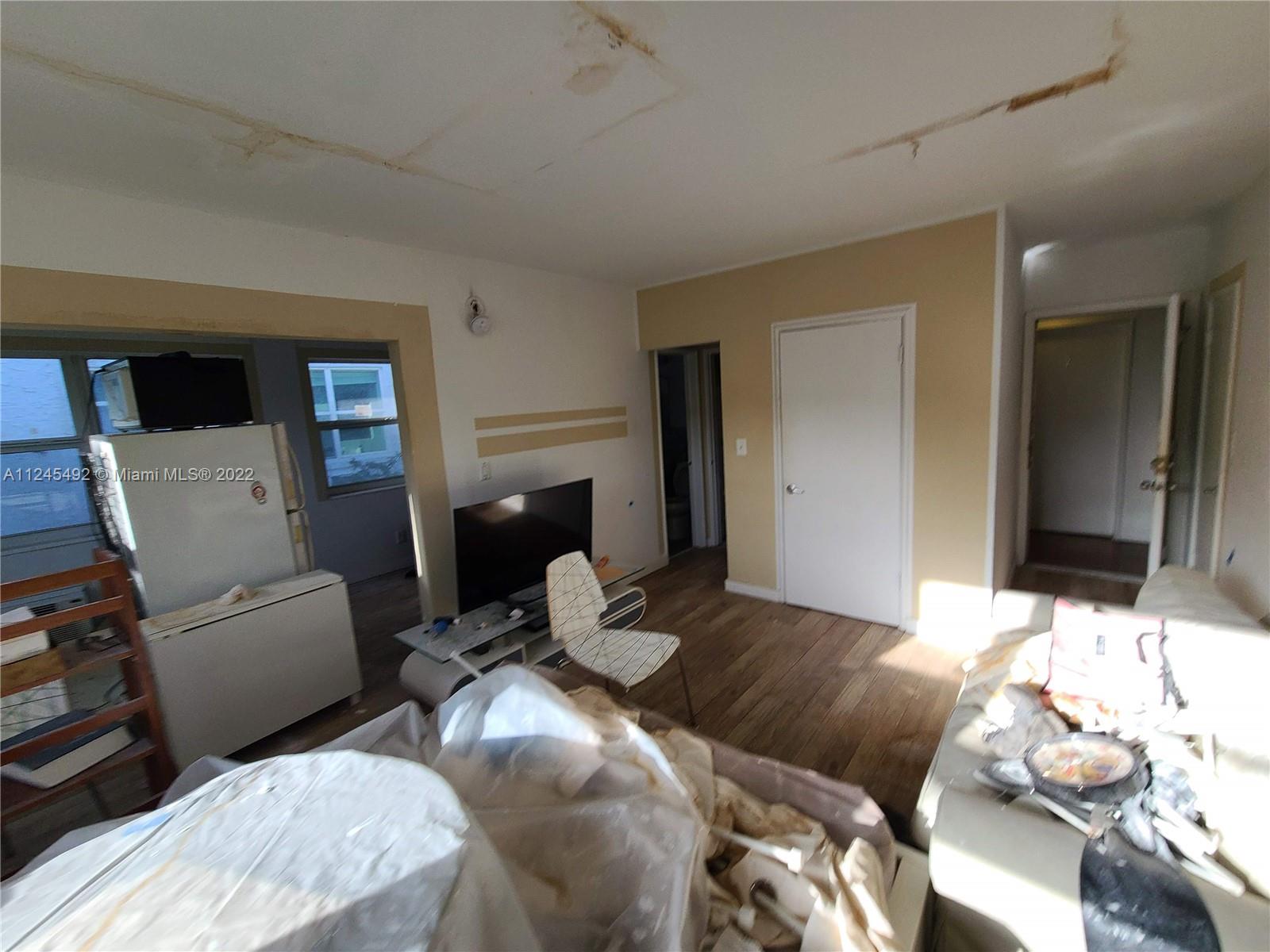 Handyman Opportunity! Sold AS-IS, HOA is changing the roof which caused water damage to the unit. Top floor corner unit with open view, impact windows, lots of potential. Fantastic location 1/2 block from Lincoln Road and lovely gated common grounds. Call listing agent for additional info or showings.