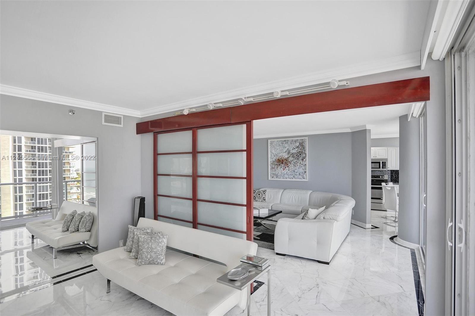 WOW! ENTER THIS FABULOUS RESIDENCE DIRECTLY ON THE BEACH IN OCEANIA III AND IMMEDIATELY AND THOUGHTOUT SEE 180 DEGREE OCEAN VIEWS TO TAKE YOUR BREATH AWAY. FANTASTIC AND STUNNING WITH 2 SPLIT BEDROOMS. ALL REDONE. SOME OF THE FINEST FURNISHES INCLUDE WHITE MARBLE FLOORS THROUGHOUT THE ENTIRE CONDO. NEW KITCHEN AND NEW BATHROOMS. PANORAMIC VIEWS FROM FLOOR TO CEILING. GLASS WINDOWS AND WRAP AROUND TERRACE. PRIMARY BEDROOM HAS WALK-IN CLOSET AND BATH WITH JACUZZI TUB AND SEPARATE SHOWER. SPACIOUS & LIGHT A GEM! ENJOY THE STATE OF THE ART COMPLEX AMENITIES SUCH A PRIVATE CLUB, SPA, POOL, MODERN GYM WITH DAILY EXERCISE CLASSES, SQUASH, RACQUETBALL, TENNIS COURTS, 1/2 BASKETBALL COURTS, 2 RESTAURANTS AND BEACH SERVICE. CLOSE DISTANCE TO SHOPPING & RESTAURANTS. A-1 SCHOOL.