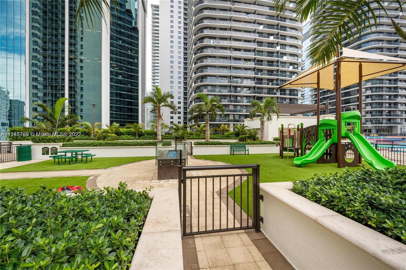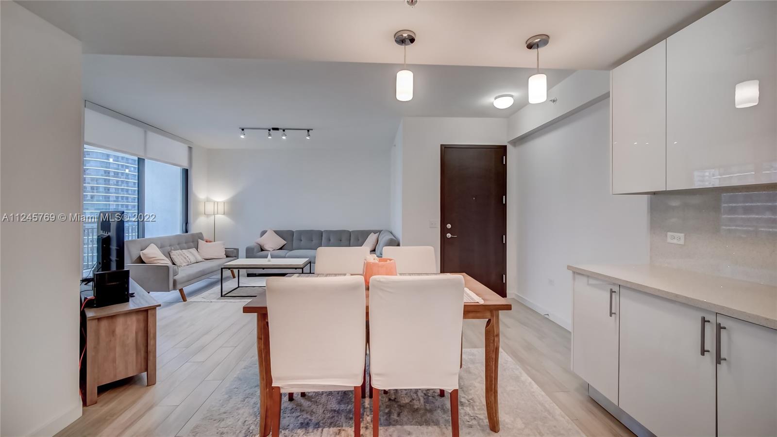 Large 1/1 with large walk-in closet, bathroom with shower & tub. Bedroom currently has a king-size bed with plenty of room for working space as well. Stainless-steel appliances including dishwasher, range, microwave, quartz countertop. Full size washer & dryer in unit. Large size balcony. Amenities (with wi-fi service throughout): 24-hour doorman, resort style pool with cabanas, BBQ grills, recently renovated fitness center, business center/library, wonderful playroom and outdoor playground, one acre amenity deck with Zen garden, game room, lounge for parties. This is the best location with many restaurants and shops within walking distance Conveniently located across the street from the Metrorail Brickell Station (access to Metromover and train) and next to a Publix for easy shopping