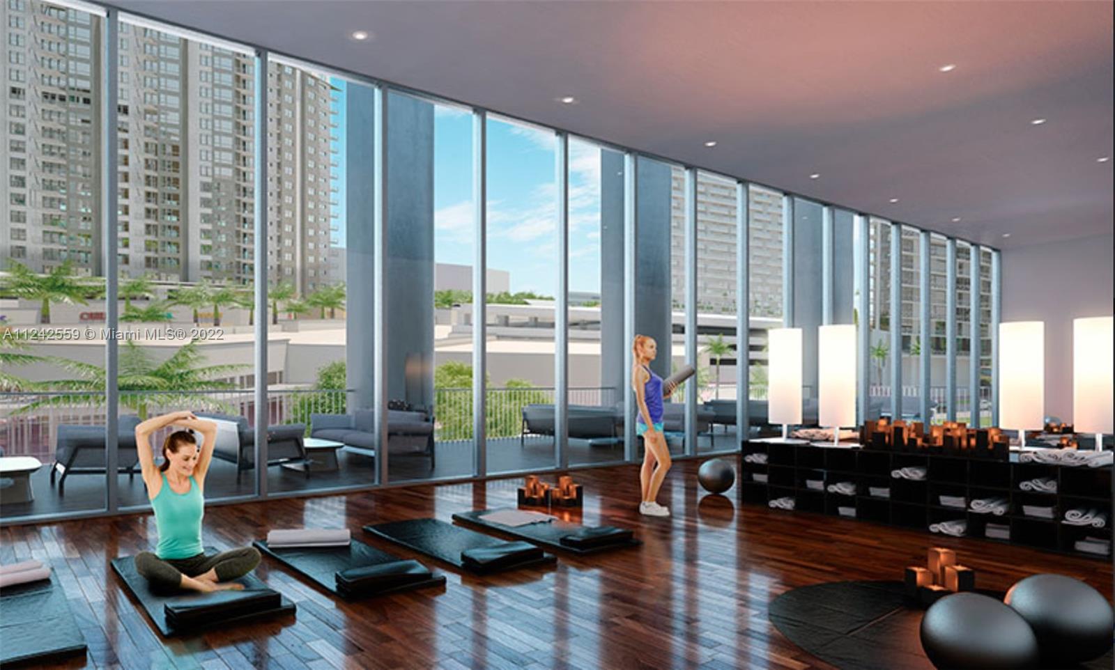 LOCATION, LOCATON & LOCATION!!! Live in the heart of Downtown Doral.Turn-key, bright and stunning corner 2beds/2baths condo ready to move in, with luxury furnishing. Double balcony apartment where you can enjoy the panoramic city views. Porcelain floor tiles throughout the unit, stainless steel appliances, quartz countertop, Italian cabinets, full size washer/dryer, only of the few units with 2 parking spaces. This beautiful building offers valet parking, amazing infinity pool, fitness center, spinning area, sauna, multi-purpose social room, children's playroom. Internet, cable, water included. Resort-style amenities. schools A+, also walking distance to restaurants, supermarket, parks, schools, City Hall, and shopping. Don't miss this opportunity!!!