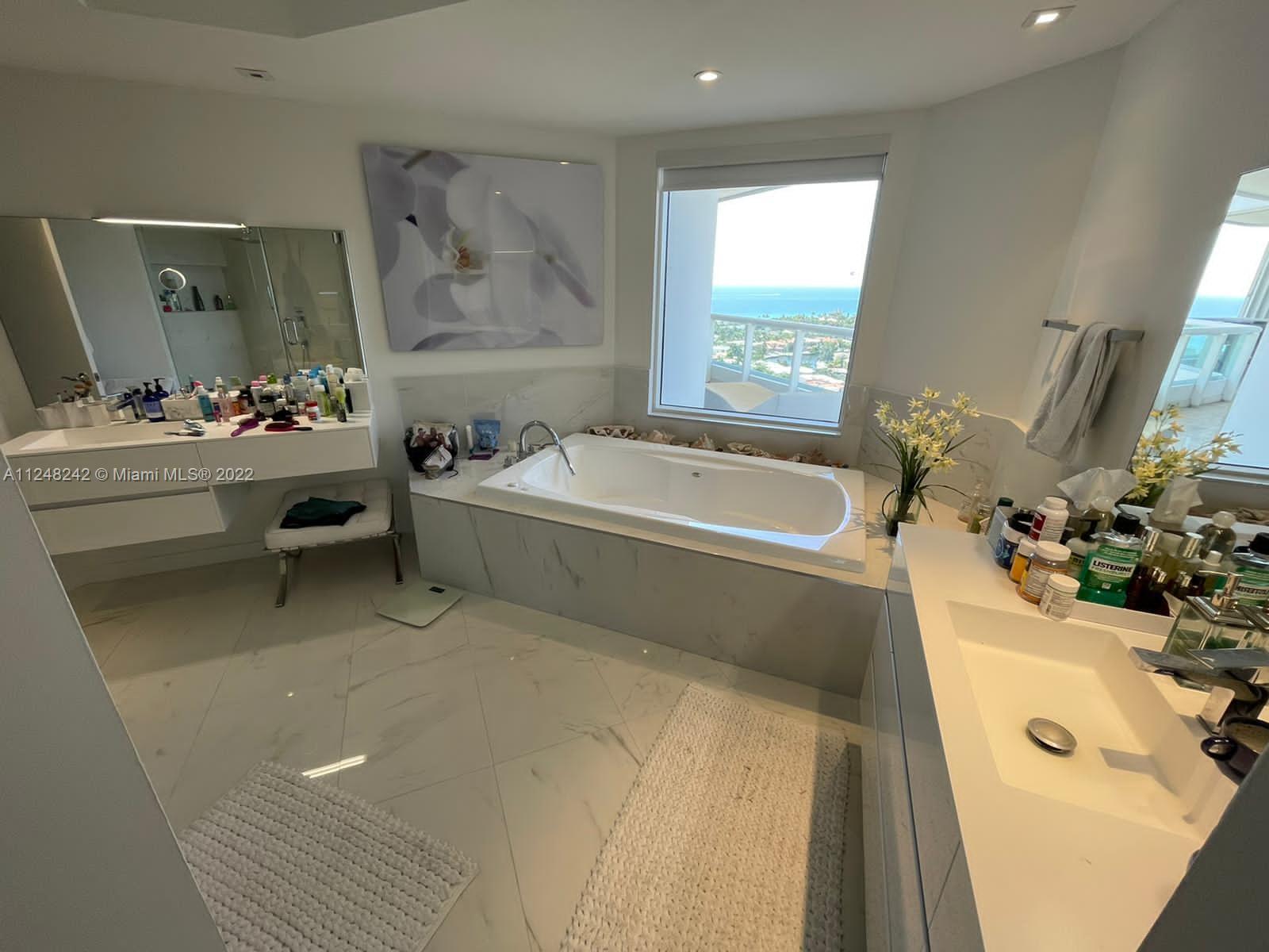 The most amazing renovated to a perfection at Atlantic III at the Point. Breathtaking panoramic views of direct ocean, intracoastal and skyline, sunrise and sunset. Almost 3000 SF, spacious, bright with 2 oversized balconies, high floor, 22Th. 3 large bedrooms, 3 full bath + half bath. Private elevator with foyer and 2 garage covered/assigned. Open Italian Kitchen from Mia Cuccina with top of the line appliances from Wolf and SUB Zero. Separated service entrance with large laundry and lots of storage space and walk-in closets. Master bedroom with ocean views and huge master bath totally new. Must be seen to appreciate all the renovation done to the unit. The point is a 5 star development with amazing amenities, luxury fitness center and spa, 4 tennis courts, 3 swimming pools. MUST SEE !!