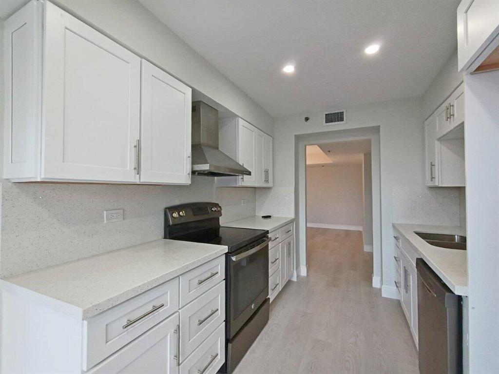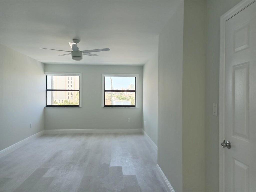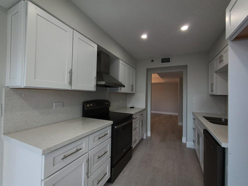 Watch the awe-inspiring sunsets over the intracoastal while you relax on your spacious balcony. Completely remodeled largest 1b/1b (1088 sq.f) in 'The Summit', the oceanfront community. New trendy 100% waterproof light vinyl floors throughout, new kitchen with white single shaker cabinets with soft close doors, White Galaxy Quartz elegant counter top and backsplash, recessed ceiling LED lights, breakfast island with extended cabinetry. Huge living and dining room (can be converted into a second bedroom), nice and smooth ceiling with popcorn removed; raised baseboards, trimmed windows and doors add elegance and contemporary look. New LED noiseless ceiling fans in every room. spacious walk-in custom-built closet, new bedroom and bathroom vanities. Basic cable TV and Internet included in HOA