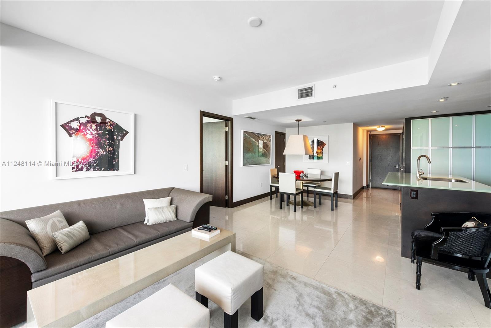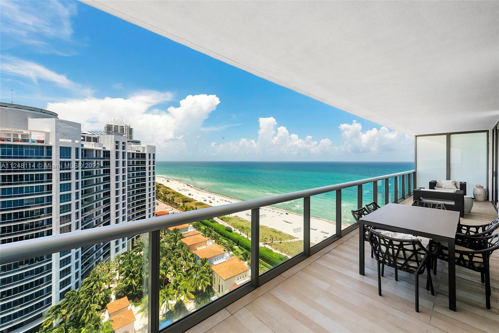 Designer finishes and ocean views await in this gorgeous 2BD/2.5BA at Miami Beach's renowned MEi condo. The contemporary high-floor home features marble floors and walls of north-facing windows framing open sky and water vistas. Expansive open living and dining areas lead to a remarkable 41-foot-terrace. Enjoy an open kitchen with Thermador appliances. The split-bedroom layout features a primary suite with a walk-in closet and spa bathroom, plus a well-appointed secondary suite. Powder room, in-unit W/D, remote blinds. MEi offers a landscaped infinity pool and gardens, beach and pool service, a clubhouse, library, lounge, a state-of-the-art fitness center, 24-hour attended lobby and valet parking. Outstanding Millionaire's Row location close to great golf courses and South Beach hot spots.