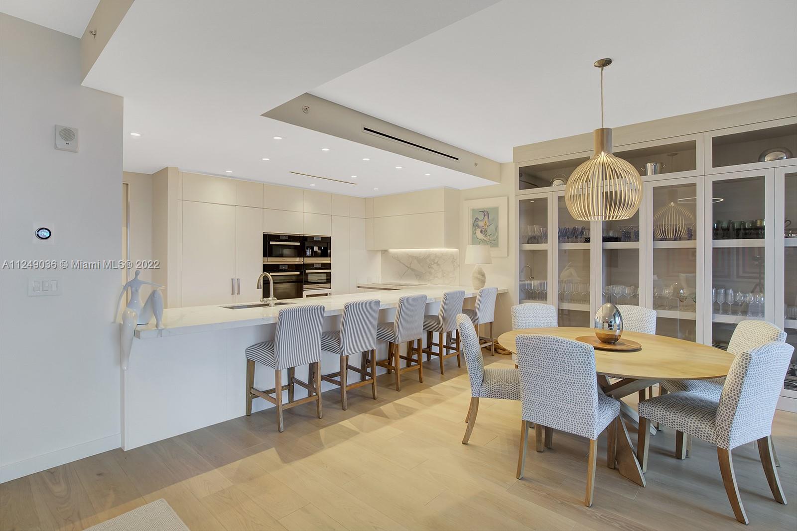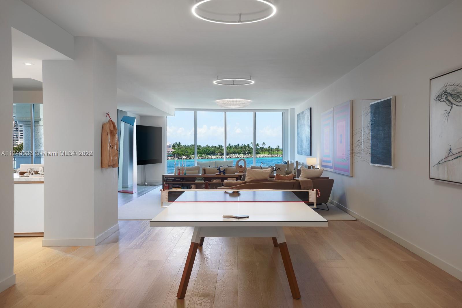 East facing, 3 bedroom, 3.5 bath with sparkling ocean views from Fisher Island’s newest and most desirable building, Palazzo Della Luna. This flow-thru unit, with East to West facing balconies, has 10-foot floor-to-ceiling windows. A ready, turn-key haven is professionally designed and furnished, with built-in closets throughout. The custom, craned-in, 16-foot white Statuary Marble countertop is a focal point in design in the Boffi gourmet kitchen. Miele, SubZero Refrigeration, and Wine Cooler round out the utmost in luxury and modern living. 6835 comes with the largest available storage room, two prime parking spaces outfitted with Tesla Charging stations, and 2 Garia golf carts. PdL is a full-service building with countless new amenities not found anywhere else on the island.