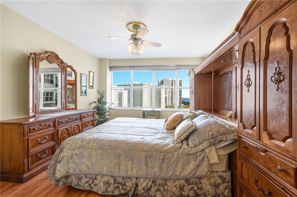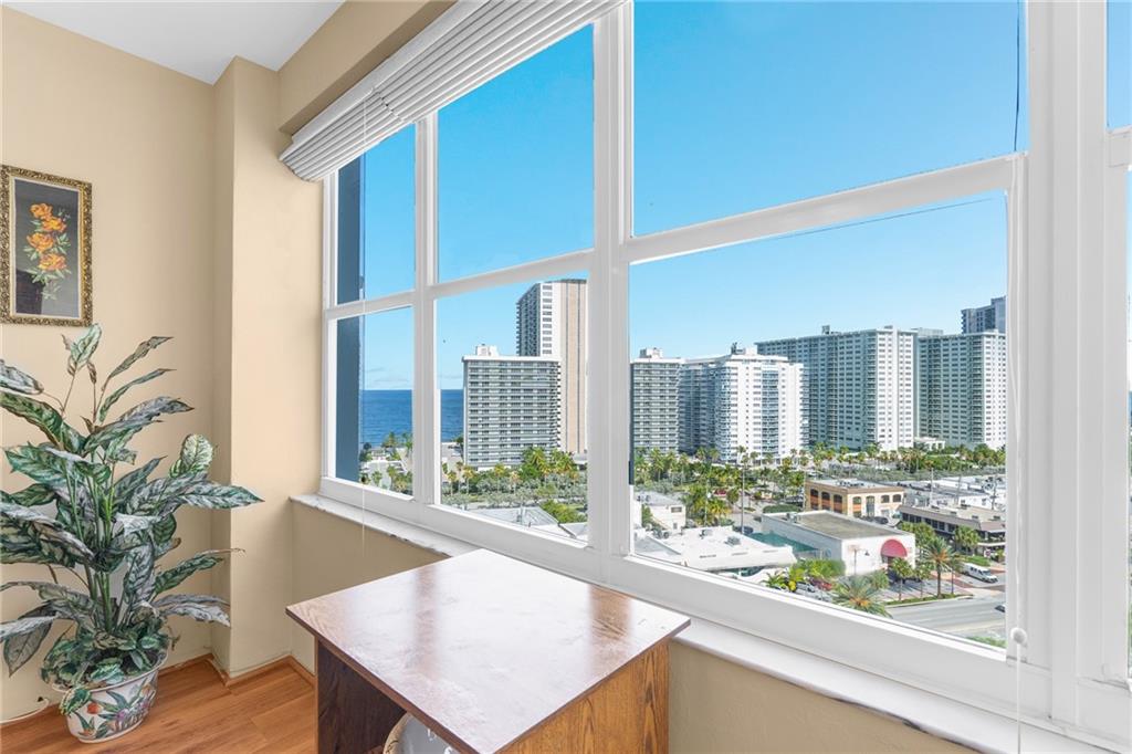 You will love the high floor SE views! Lots of large hurricane windows let in plenty of sunlight. Kitchen features granite countertops and stainless steel appliances. Hall bath completely updated. Plenty of closets and best of all it comes furnished! Just bring your toothbrush! :) Just a few blocks from the ocean, grocery store, post office, restaurants and shopping. Convenient location near A1A and Oakland Park Blvd. Building exterior recently painted and upgraded glass balconies added. Even the hallways are gorgeous! There is a private clubhouse on the intracoastal that belongs to this building. This is a 55+ co-op. No renting. No pets. Cash only. Minimum annual income of $71,543 and credit score of 700 is required for purchase. $745 monthly maintenance includes wifi, cable, water, etc.