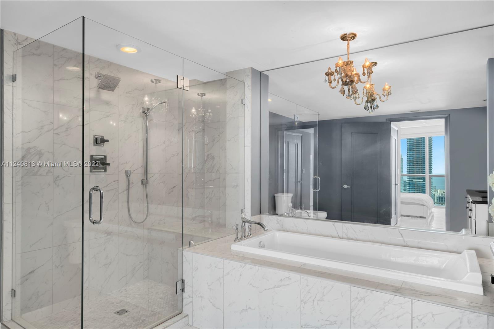 An absolutely breathtaking turnkey 2 Bedroom + Den/Media Room, 2 Bathrooms, overlooking the spectacular waterfront bay with east to west sunrise & sunset views. The highest floor unit available 03 line, completely remodeled with modern luxury finishes. Master bedroom has 2 walk-in closets and waterfront views, master bathroom is designed to perfection with a separate bathtub. Guest bedroom also has waterfront views. Unit has panoramic views of the waterfront bay and Brickell skyline! Icon Brickell is located within walking distance to Brickell City Centre & shops/restaurants. Fantastic dining in Icon complex with world renown Cipriani restaurant and Cantina la Veinte. Building amenities highly popular with large spa, brand new remodeled pool area, fitness center and much more.