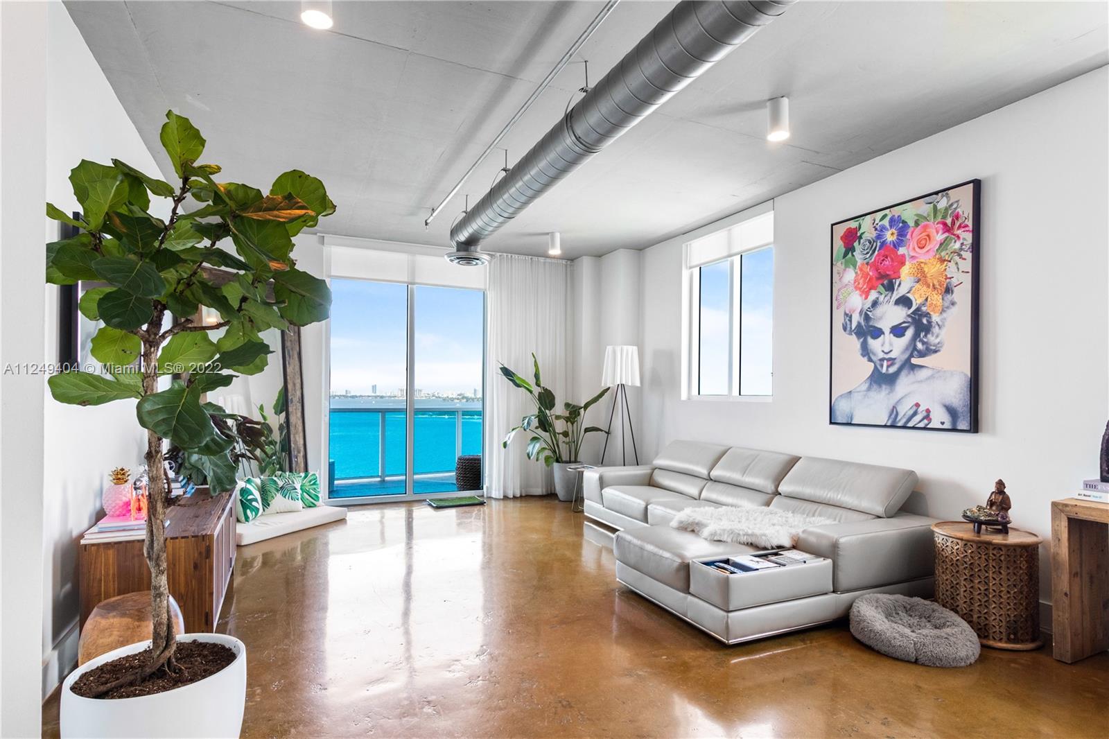 Enjoy breathtaking unobstructed views of Biscayne Bay and the city from this flow-through SE corner residence at Star Lofts. Residence 904 has a loft-style design with 10 ft ceilings, exposed AC ducts and pipes. Loft features 2 Bedrooms and 2 Baths, kitchen with Italian cabinetry, granite counters, stainless steel appliances & Sub Zero refrigerator. Expansive wraparound terraces boast seamless indoor/outdoor living space for both sunrise and sunset views. The building has recently undergone a full lobby, fitness center and elevator remodel. Surrounded by Miami's ultra-luxury shops, restaurants, and nightlife, Star Lofts sets the bar for lifestyle and location