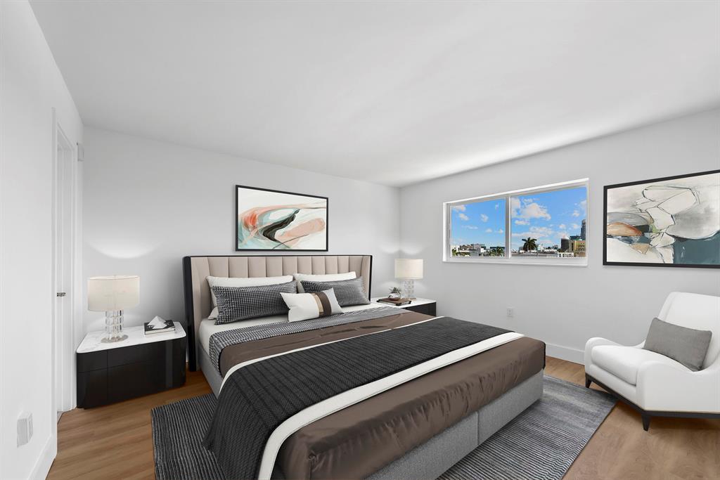 In the heart of Miami Beach! Located just blocks from the beach, this stunning bright and airy top floor unit features a spacious open floor plan that will exceed your expectations! Newly renovated and redesigned, this beautitul condo offers brand new premium vinyl flooring throughout, new appliances, a newly transformed kitchen with waterfall countertops, and brand new AC unit. The primary bedroom features an ensuite and tremendous walk-in closet with spectacular views of the city. The secondary bedroom is simply spacious and has its own balcony as well as breathtaking views of both the bay and the city skyline. This 2 bedroom 2 bathroom condo is the ultimate oasis to call home with a little bit of paradise right outside your door!