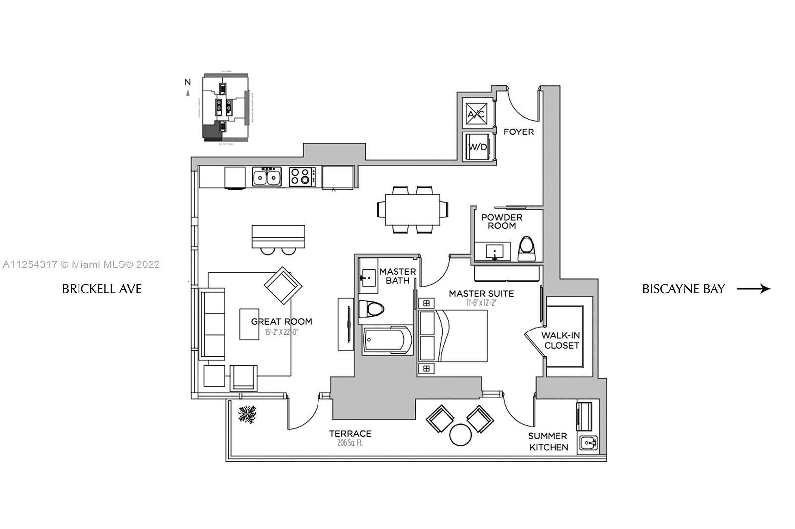 Welcome to Echo Brickell! This luxury 1 Bed, 1.5 Bath condo enjoys spectacular bay and city views of south Brickell; reminiscent of overlooking Central Park. The residence comes equipped with beautiful Italian kitchen cabinets with high end appliances by Sub-Zero, Wolf and a Bosch Espresso machine, marble floors, closet shelving, built-in BBQ on the balcony, stackable washer and dryer in unit, electronic shades, built-in speakers and more. Echo Brickell residents have access to a beautiful pool, jacuzzi and fitness center in the middle of the building with some of the best views in the city. The location is ideally situated for ease of access all while being a short distance to shopping, dining, and most major conveniences.