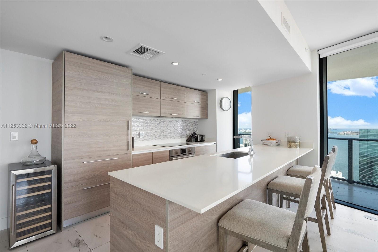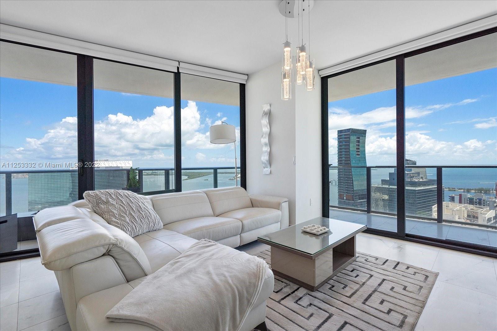 3 beds PLUS modified DEN, 2.5 baths with large wrap around balcony. Modern kitchen and stainless steel appliances. Porcelain tile floors throughout. Electric blinds in all bedrooms. Washer/dryer in unit. 1 assigned parking space. Bar, spa, gym, private theater, party room, exclusive private pool and rooftop jacuzzi and restaurant on site. Prime location in Brickell.