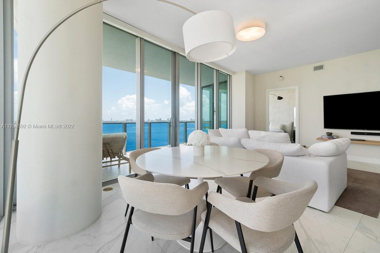 Picturesque, luxury condominium at Biscayne Beach in Miami Beach's highly sought-after Edgewater neighborhood. Offered fully-furnished by Restoration Hardware, the NE corner location on an elevated floor offers stunning direct bay views. 3 bed, 4 FULL bath, top-of-the-line Miele appliances, marble flooring throughout, and private elevator foyer. Building designed by legendary Tom Filicia, offers a zero-entry pool and lap pool, two tennis courts, half basketball court, beach club with cabanas and beach volleyball area overlooking the bay, towel service, bar, social rooms, fitness room, spa with sauna, steam room, massage rooms and a resident dog park.