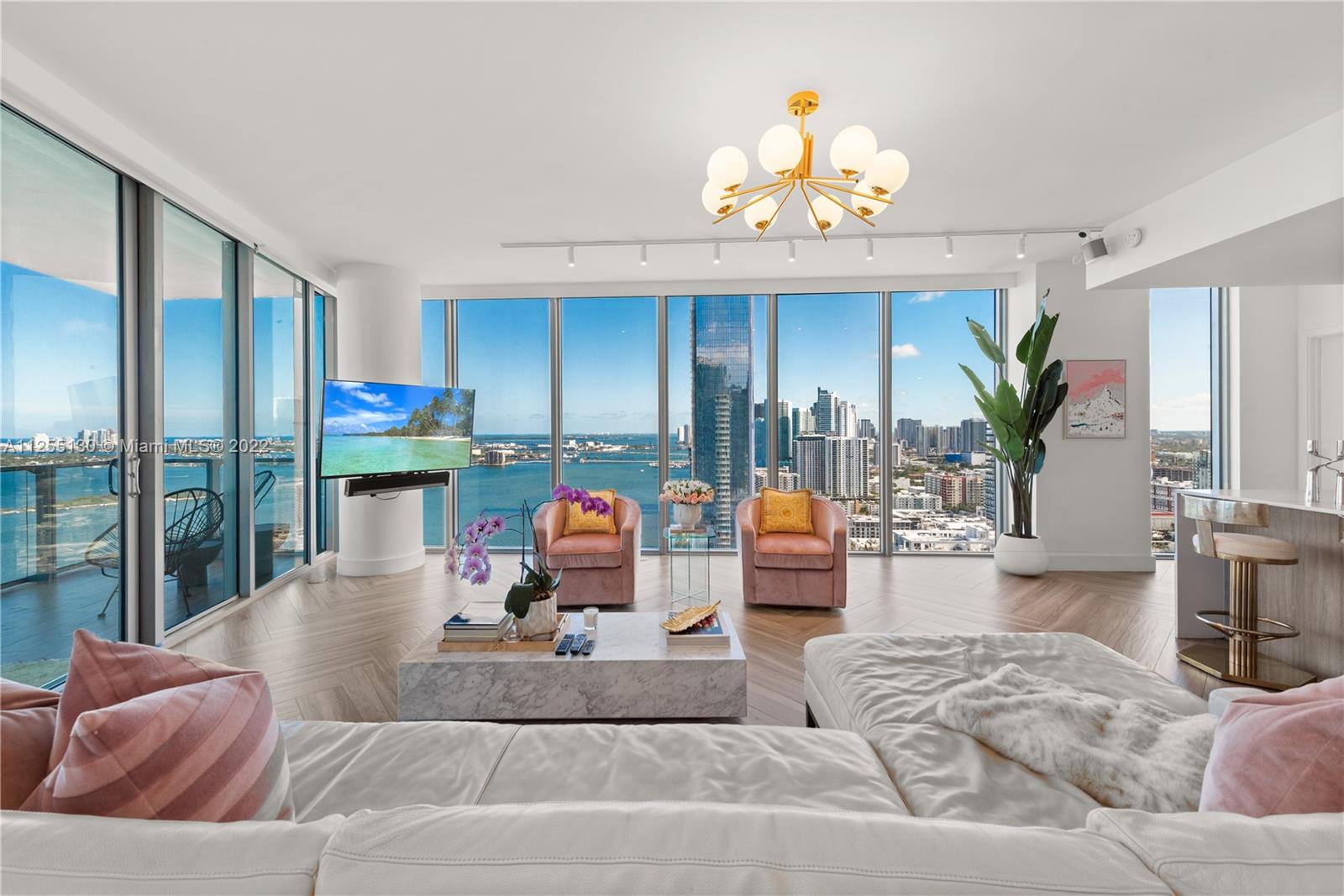 Beautiful three-bedroom, four-bathroom, south-east corner residence at bay-front Biscayne Beach with breathtaking views. The elevator opens to your private foyer allowing access to this spacious 32nd floor home in the sky with floor-to-ceiling glass windows, a large balcony, and fabulous herringbone pattern floors. The kitchen features Miele appliances and Snaidero cabinetry and the primary bathroom has a spa-inspired design. The stylish indoor and outdoor common areas at Biscayne Beach are designed by Elle Decor A-List Designer Thom Filicia. Amenities include tennis, valet parking, a dog park, 2 pools, a Beach Club, and a state-of-the-art gym. Easy to show.