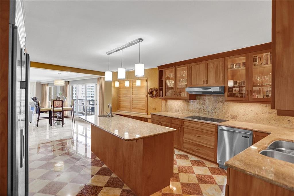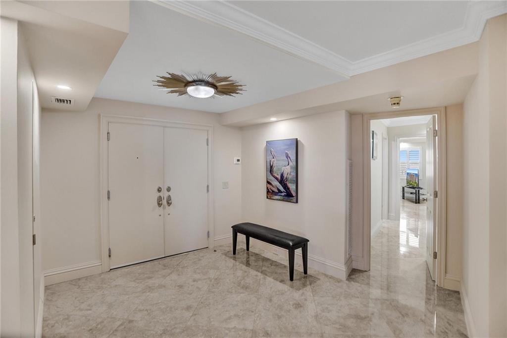 Spacious 3 bedroom condo with amazing direct ocean and intracoastal views at the highly desirable Hampton Beach Club. Quality upgrades throughout including marble floors, raised panel doors, crown moldings and 5" baseboards. Gourmet kitchen with Sub-Zero refrigerator, double ovens, beautiful cabinetry and granite/onyx counter tops. Large pantry and laundry room with sink and extra storage space. Formal dining room with wet bar. Huge master bath with over sized shower and jacuzzi tub. Great building amenities and gorgeous grounds featuring beautiful beach, oceanfront pool, BBQ grills, outdoor kitchen, pickle ball and tennis court. Plenty of guest parking. On site management and 24/7 security. Pet friendly and OK to lease immediately, twice per year. New 2 zone AC and water heater.