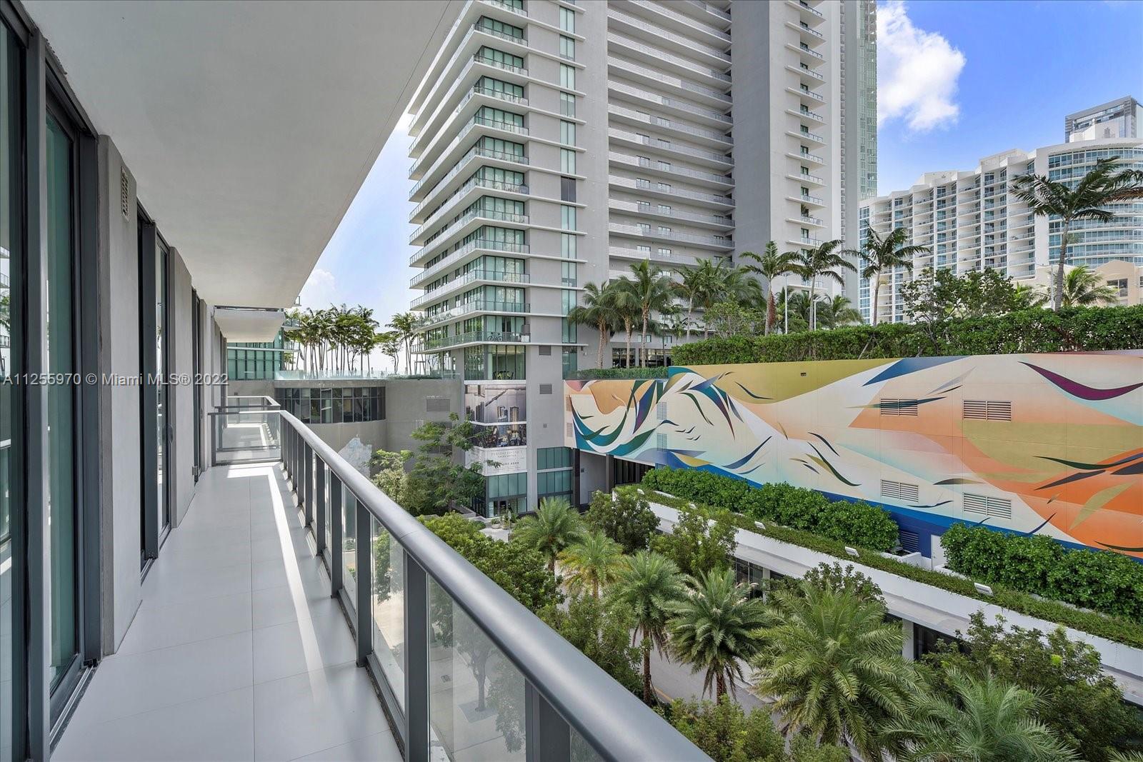 2bed/2ba + den with modified floorplan, the unit has over 1,000 SQFT of living area and 12 feet ceilings. Top of the line porcelain floor with wrap around 234 sq ft terrace. Modern kitchen with Bosch appliances. Assigned parking spot is on the same floor of the apartment. Paraiso Bayviews offers incredible amenities including a rooftop pool on the 46th floor and a second pool on the 5th floor, state of the art fitness center, club room, Children's room, BBQ grills, Hot tub, Spa, Sauna, massage rooms, billiard room and more. Basic cable and internet included in HOA. 24 hour security and valet. Flexible rental policy.