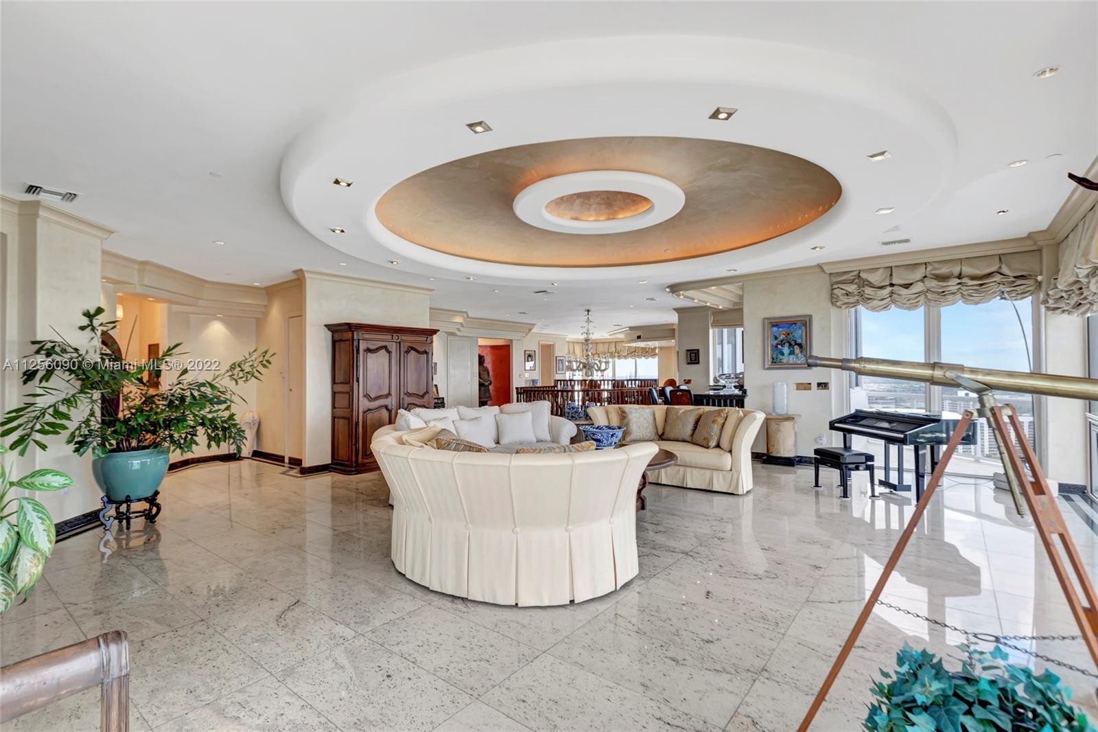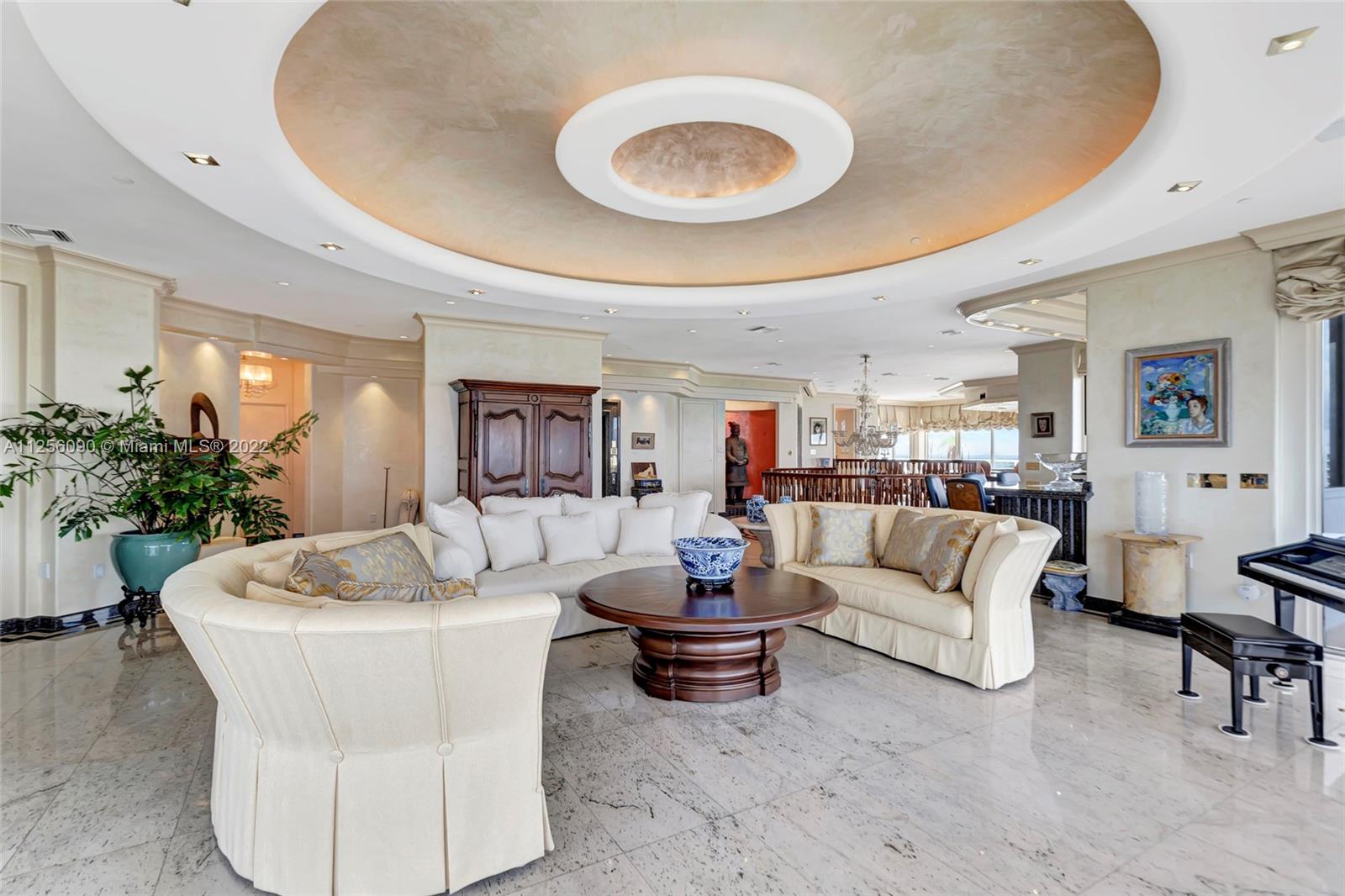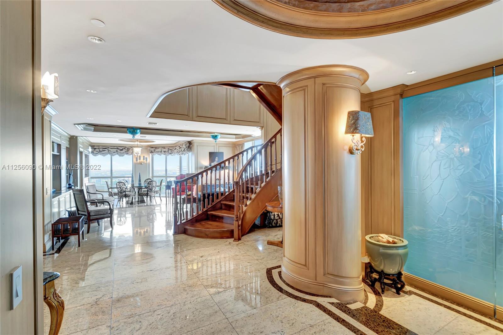 AN EPITOME OF ELEGANCE RIGHT IN THE HEART OF AVENTURA OFFERING THE GRANDEUR OF THE INSIDE, OUTSIDE LIVING. THIS EXQUISITE PENTHOUSE OFFERS: INTRIGUING MARBLE AND GRANITE WORK, ITALIAN, LALIQUE INSPIRED, FROSTED BEDROOM PANELS,WINE CELLAR,PRIVATE ELEVATORS,MAGNIFICENT WOOD STAIRCASE, 2 WET BARS,DUMBWAITER LIFT, TERRACE JACUZZI,AMAZING WALKING CLOSETS WITH ROTATING RACKS, BUILT TO ORGANIZE THE BUYER'S SENSE OF STYLE, 4 PARKING SPACES,TWO MASTER BEDROOMS! A TWO STORY PALATIAL SPACE WITH SO MANY ALLURING FEATURES AND MOST UNIQUE LAYOUTS. FURNITURE AND ARTWORK SOLD SEPARATELY. EXPANSIVE TERRACE OFFERS STRIKING VIEWS OF THE INTRACOASTAL AND THE OCEAN. ASTOUNDING BUILDING FEATURING: TENNIS COURTS, HEATED POOLS, STATE OF THE ART FITNESS ROOM, JACUZZI. JUST A TASTEFUL RICHNESS OF DESIGN AND CLASS!